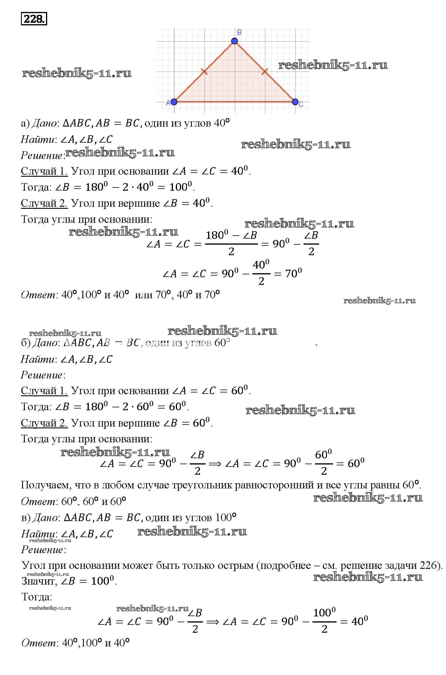 Готовая домашняя работа с ответами по Геометрии за 7, 8, 9 класс Атанасян, Бутузов, Кадомцев Учебник Просвещение 2010 ФГОС - Задачи 228