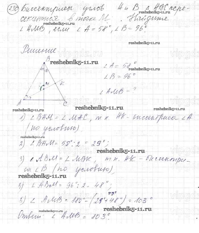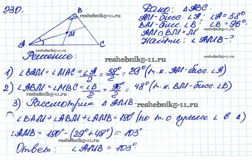 Готовая домашняя работа с ответами по Геометрии за 7, 8, 9 класс Атанасян, Бутузов, Кадомцев Учебник Просвещение 2010 ФГОС - Задачи 230