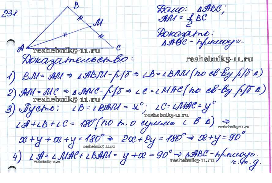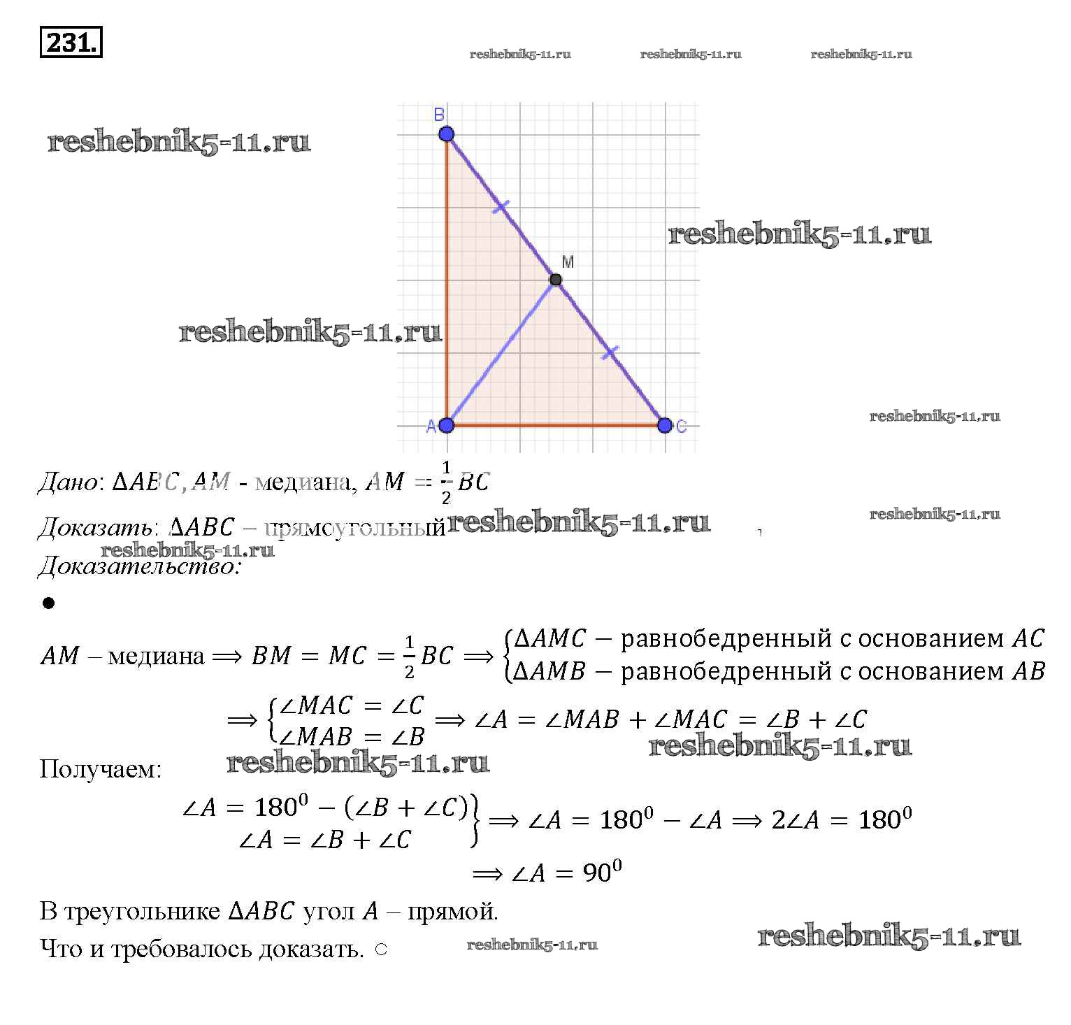 Готовая домашняя работа с ответами по Геометрии за 7, 8, 9 класс Атанасян, Бутузов, Кадомцев Учебник Просвещение 2010 ФГОС - Задачи 231