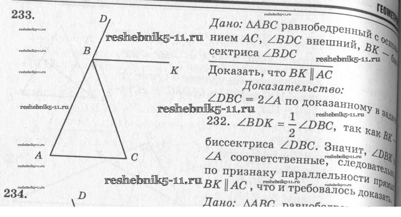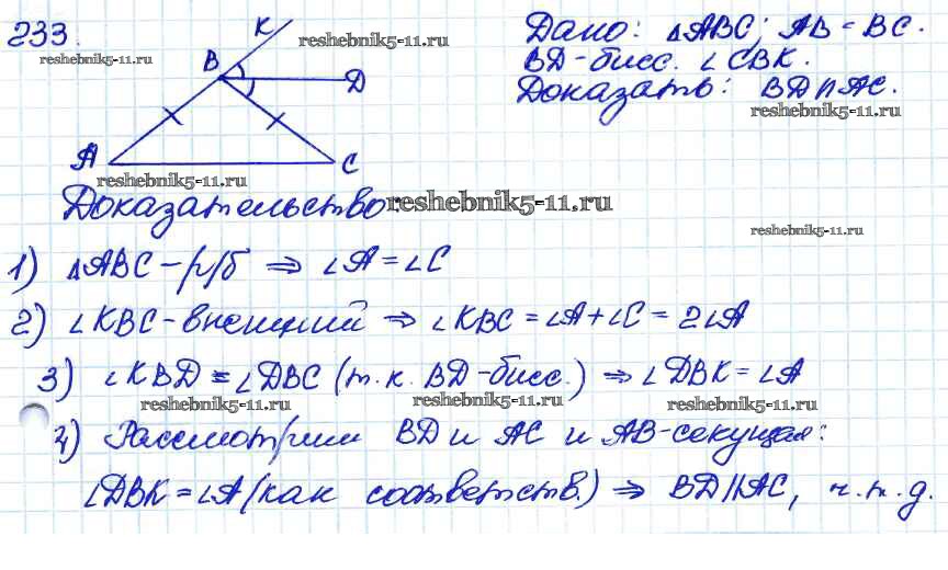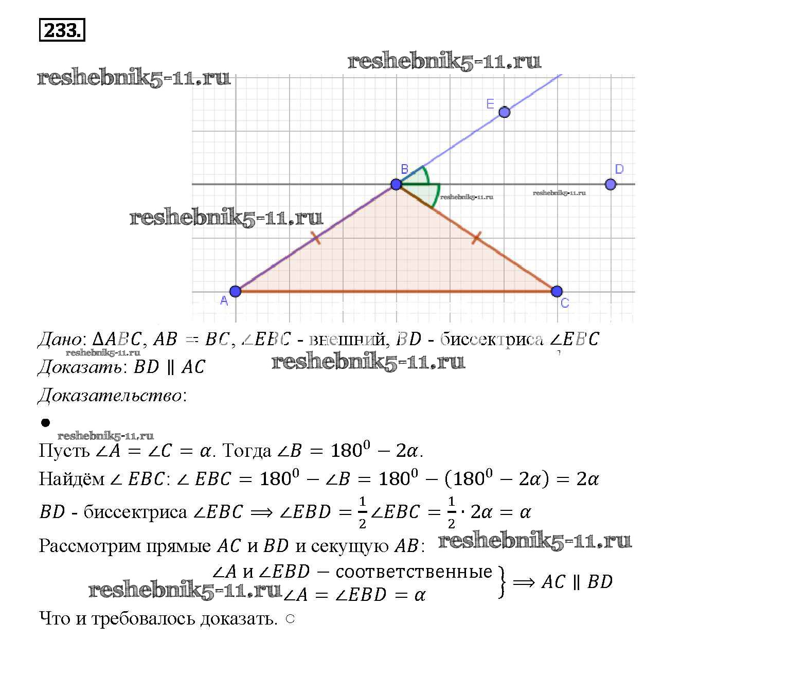 Готовая домашняя работа с ответами по Геометрии за 7, 8, 9 класс Атанасян, Бутузов, Кадомцев Учебник Просвещение 2010 ФГОС - Задачи 233