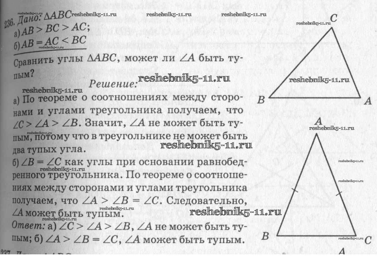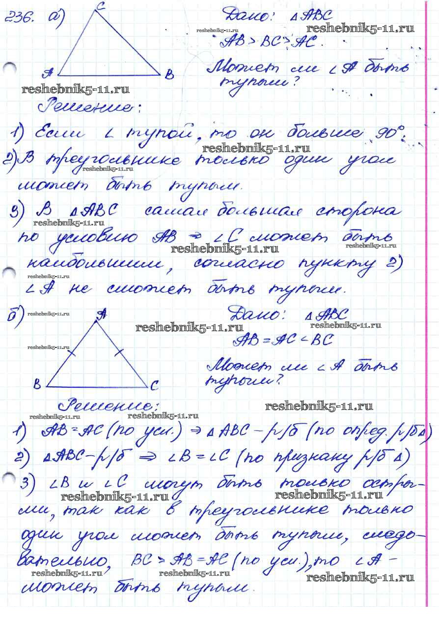 Готовая домашняя работа с ответами по Геометрии за 7, 8, 9 класс Атанасян, Бутузов, Кадомцев Учебник Просвещение 2010 ФГОС - Задачи 236