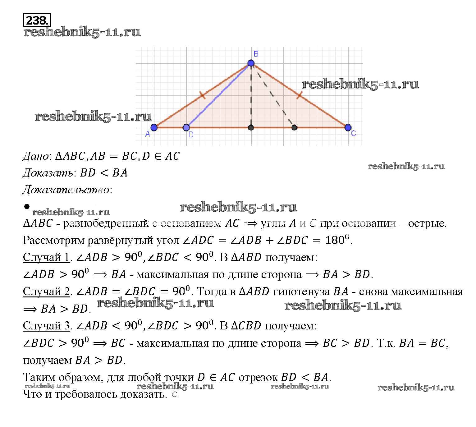 Готовая домашняя работа с ответами по Геометрии за 7, 8, 9 класс Атанасян, Бутузов, Кадомцев Учебник Просвещение 2010 ФГОС - Задачи 238