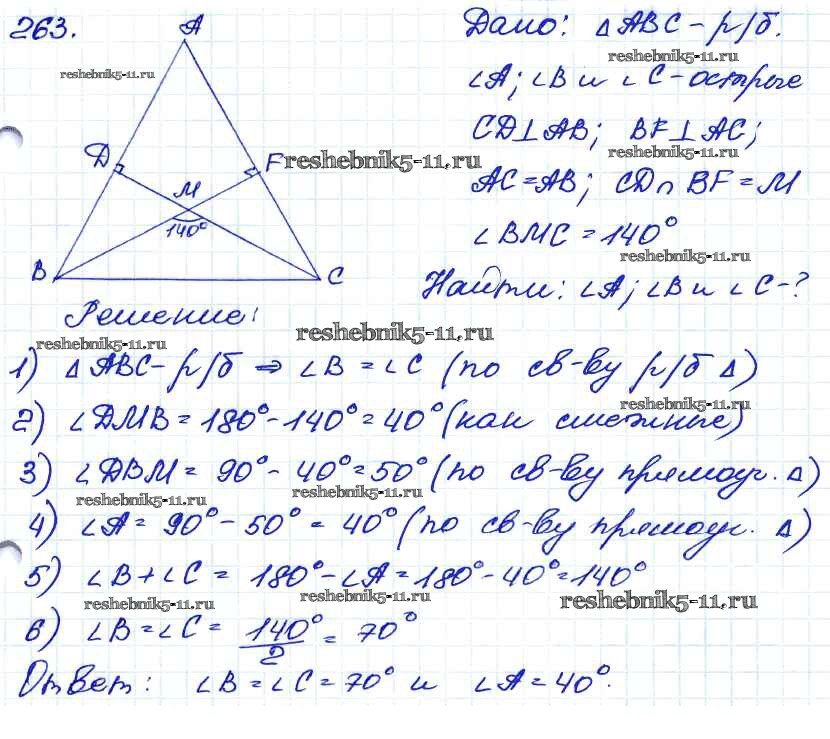 Готовая домашняя работа с ответами по Геометрии за 7, 8, 9 класс Атанасян, Бутузов, Кадомцев Учебник Просвещение 2010 ФГОС - Задачи 263