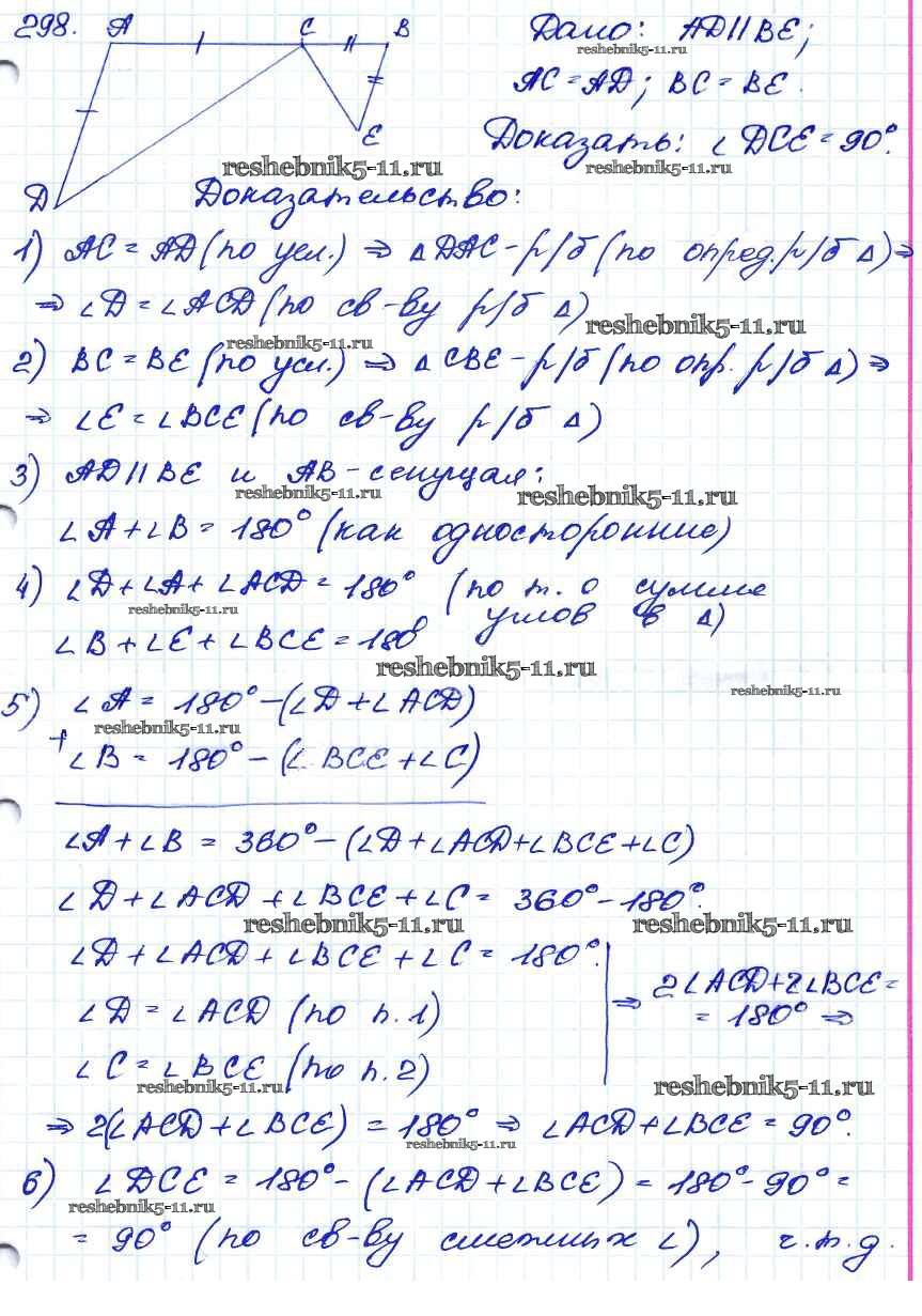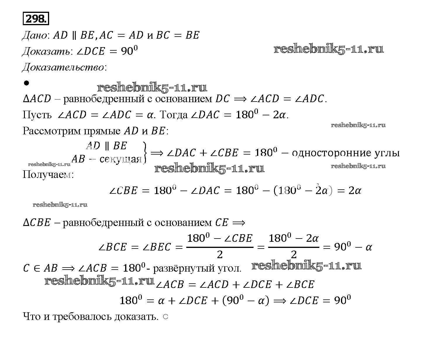 Готовая домашняя работа с ответами по Геометрии за 7, 8, 9 класс Атанасян, Бутузов, Кадомцев Учебник Просвещение 2010 ФГОС - Задачи 298