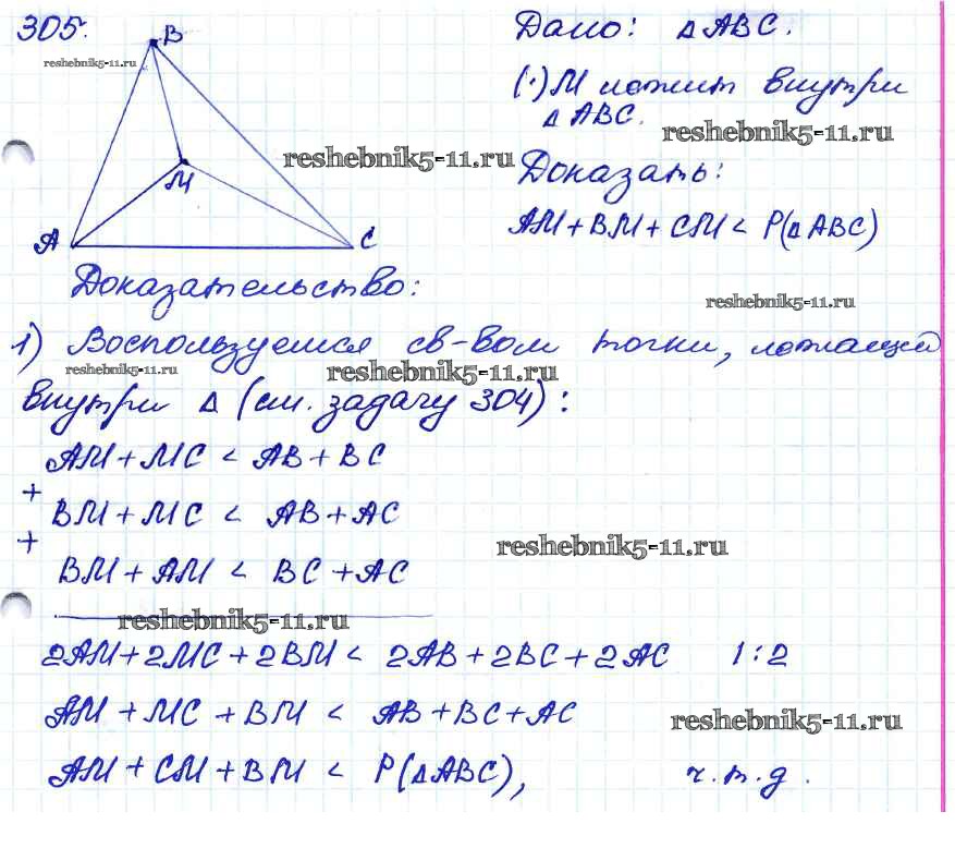 Готовая домашняя работа с ответами по Геометрии за 7, 8, 9 класс Атанасян, Бутузов, Кадомцев Учебник Просвещение 2010 ФГОС - Задачи 305