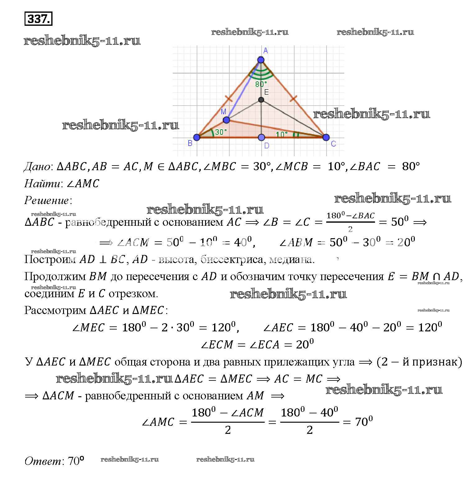 Готовая домашняя работа с ответами по Геометрии за 7, 8, 9 класс Атанасян, Бутузов, Кадомцев Учебник Просвещение 2010 ФГОС - Задачи 337