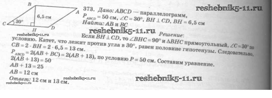 Готовая домашняя работа с ответами по Геометрии за 7, 8, 9 класс Атанасян, Бутузов, Кадомцев Учебник Просвещение 2010 ФГОС - Задачи 373