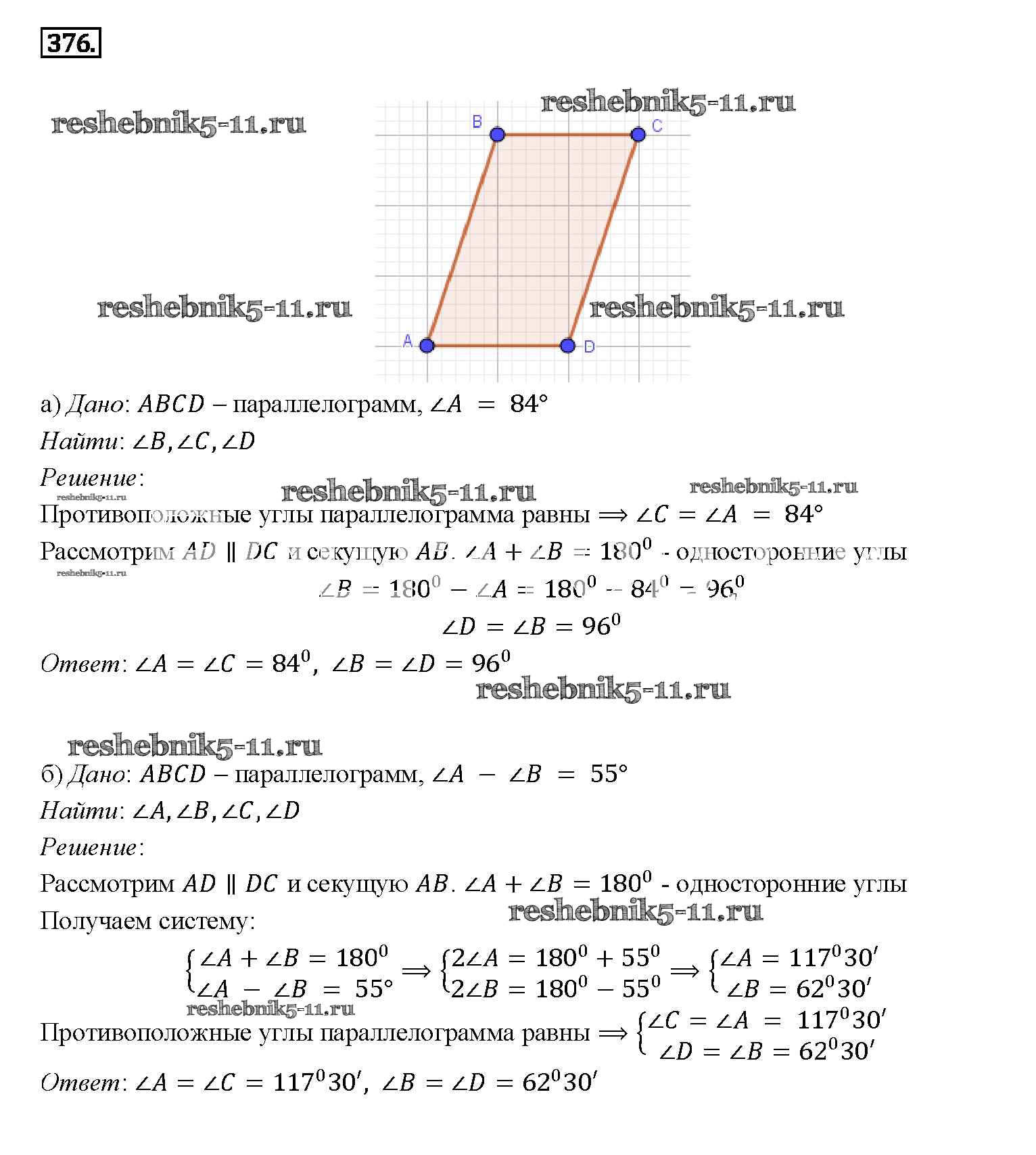 Готовая домашняя работа с ответами по Геометрии за 7, 8, 9 класс Атанасян, Бутузов, Кадомцев Учебник Просвещение 2010 ФГОС - Задачи 376