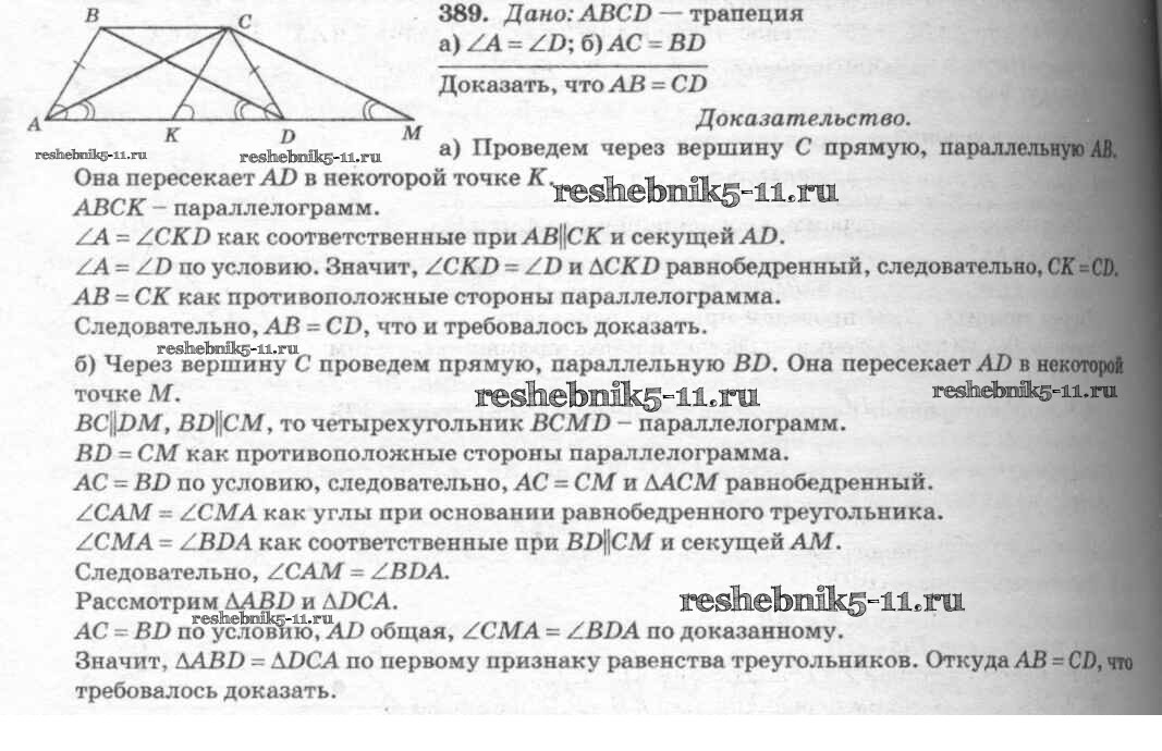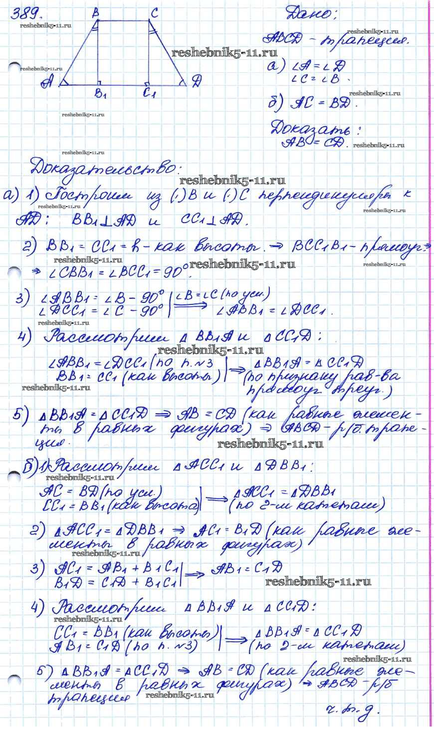 Готовая домашняя работа с ответами по Геометрии за 7, 8, 9 класс Атанасян, Бутузов, Кадомцев Учебник Просвещение 2010 ФГОС - Задачи 389