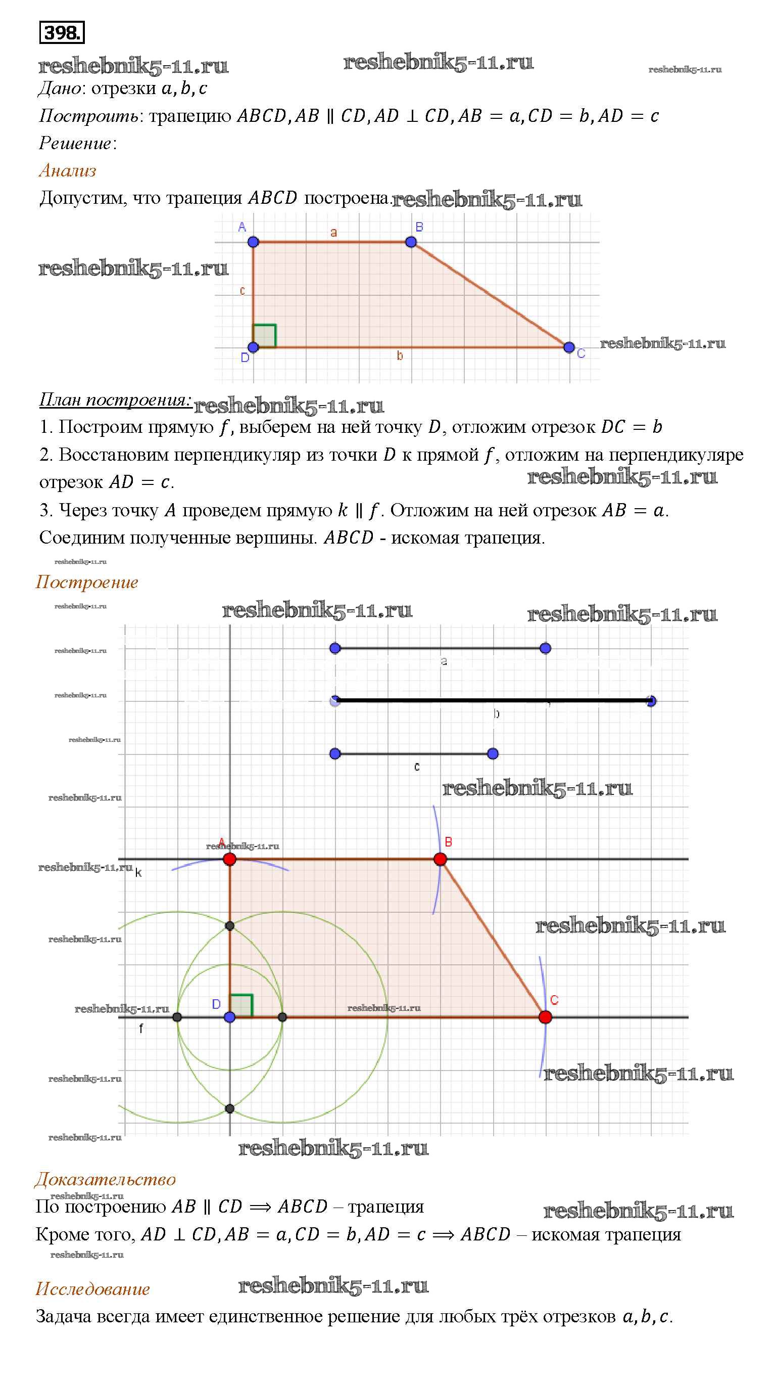 Готовая домашняя работа с ответами по Геометрии за 7, 8, 9 класс Атанасян, Бутузов, Кадомцев Учебник Просвещение 2010 ФГОС - Задачи 398