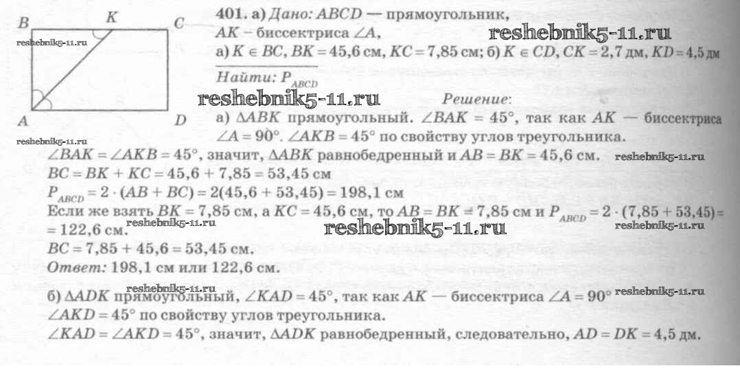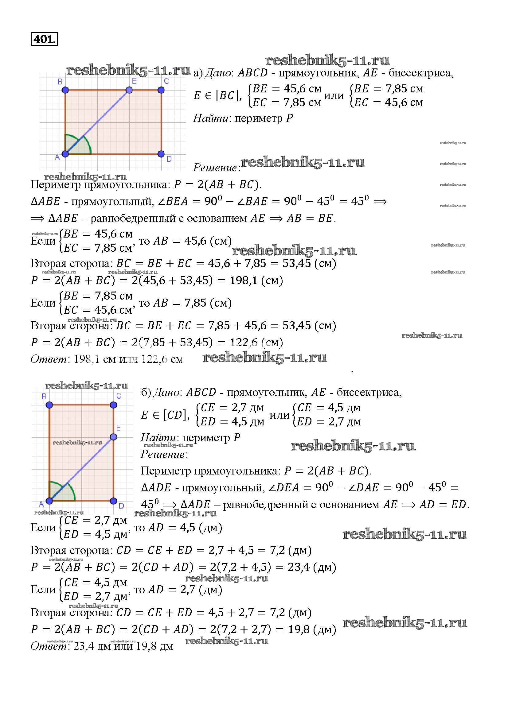 Готовая домашняя работа с ответами по Геометрии за 7, 8, 9 класс Атанасян, Бутузов, Кадомцев Учебник Просвещение 2010 ФГОС - Задачи 401