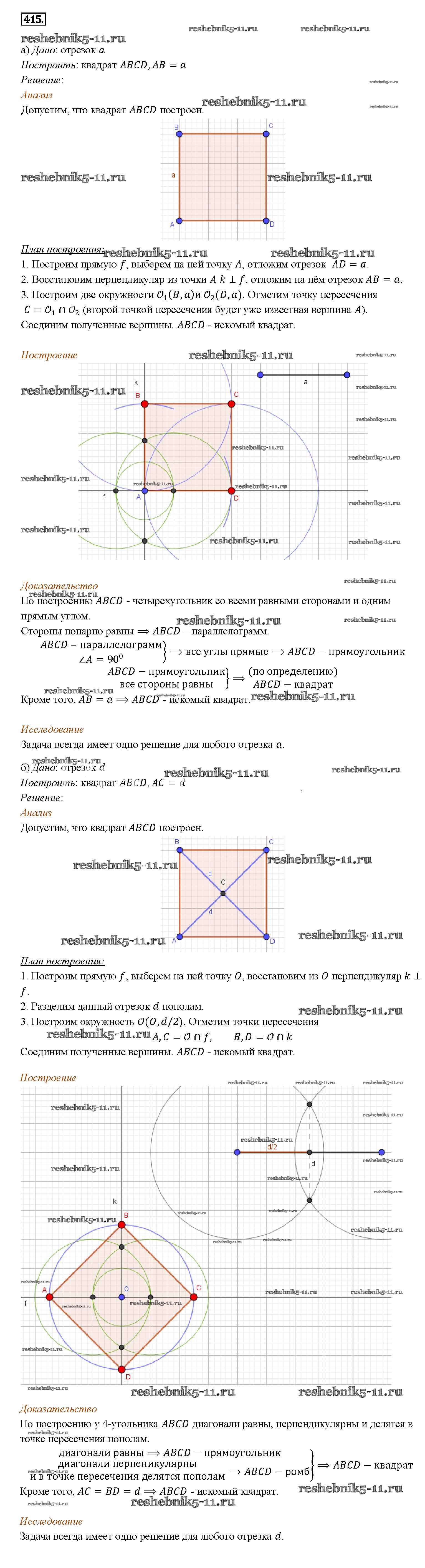 Готовая домашняя работа с ответами по Геометрии за 7, 8, 9 класс Атанасян, Бутузов, Кадомцев Учебник Просвещение 2010 ФГОС - Задачи 415