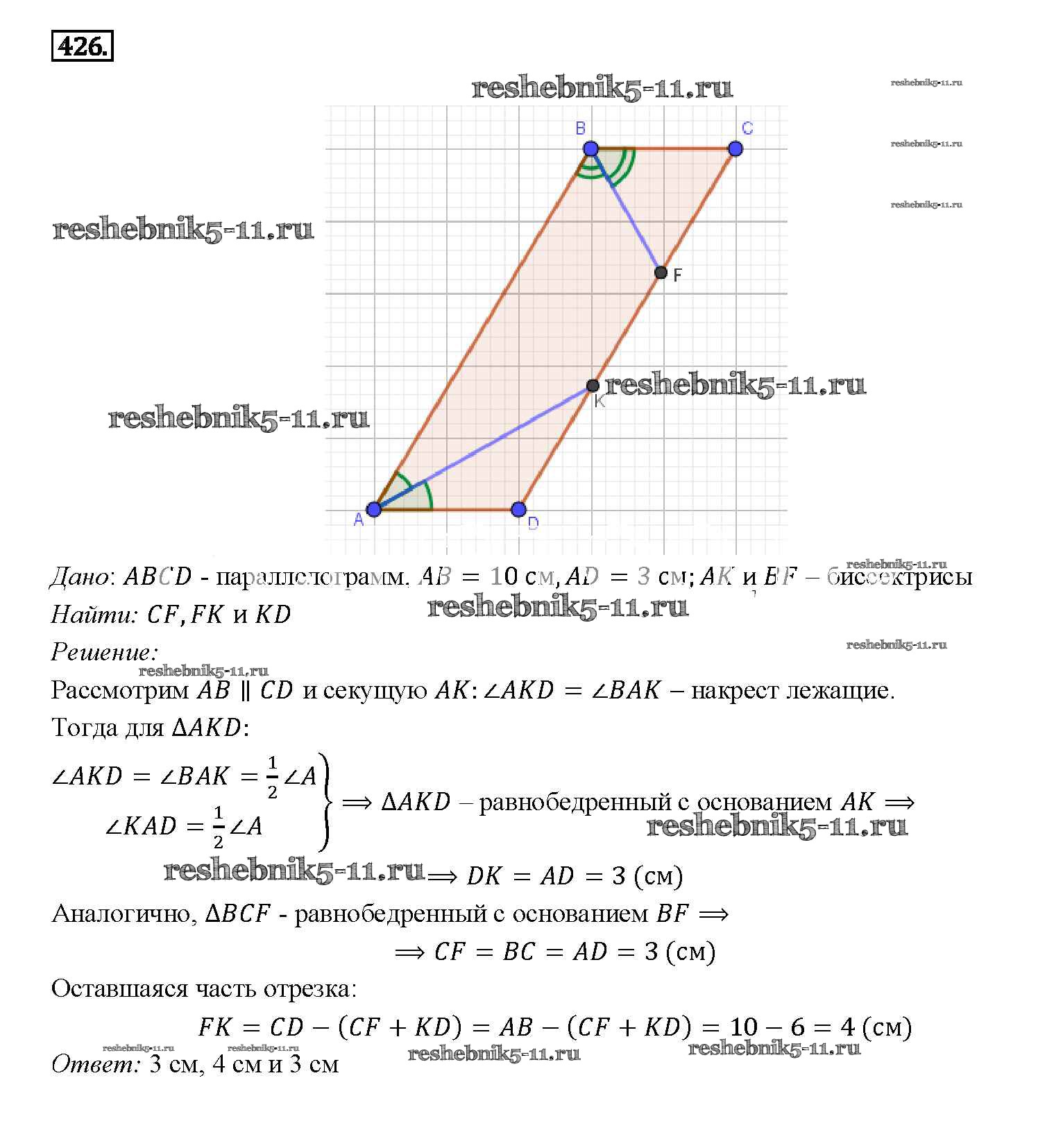 Готовая домашняя работа с ответами по Геометрии за 7, 8, 9 класс Атанасян, Бутузов, Кадомцев Учебник Просвещение 2010 ФГОС - Задачи 426
