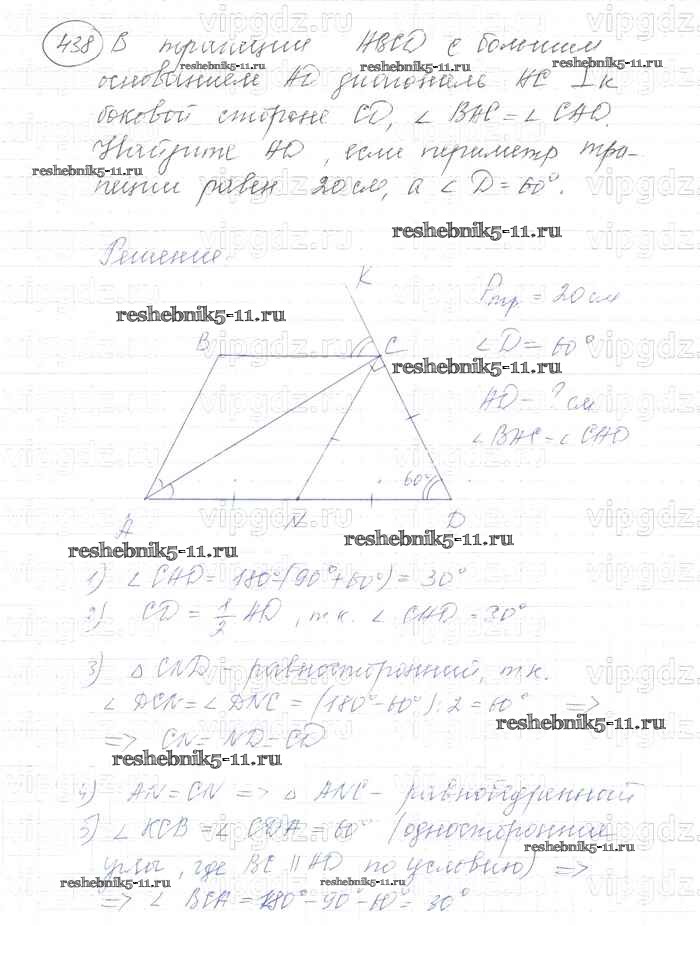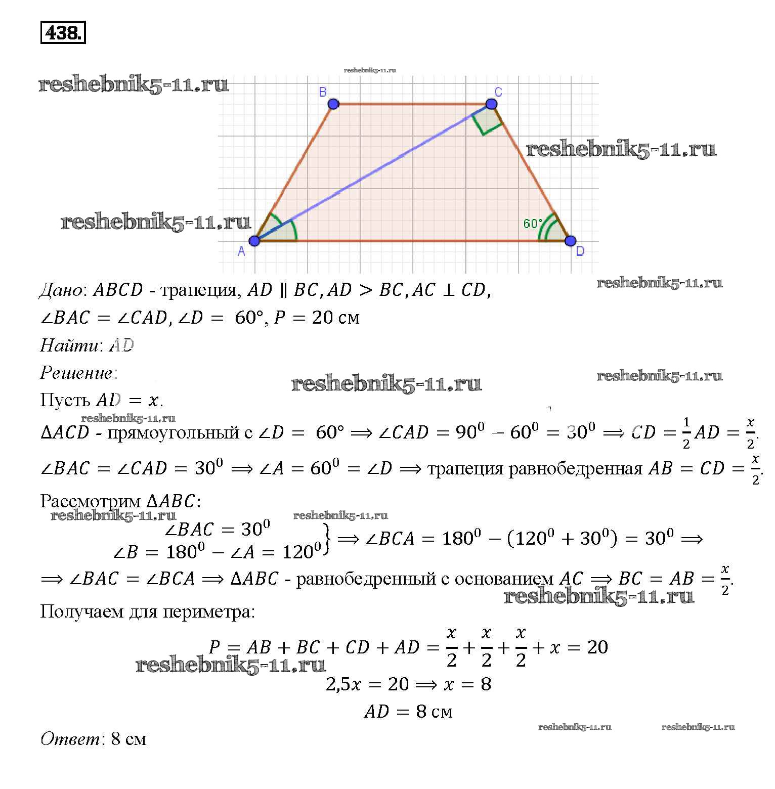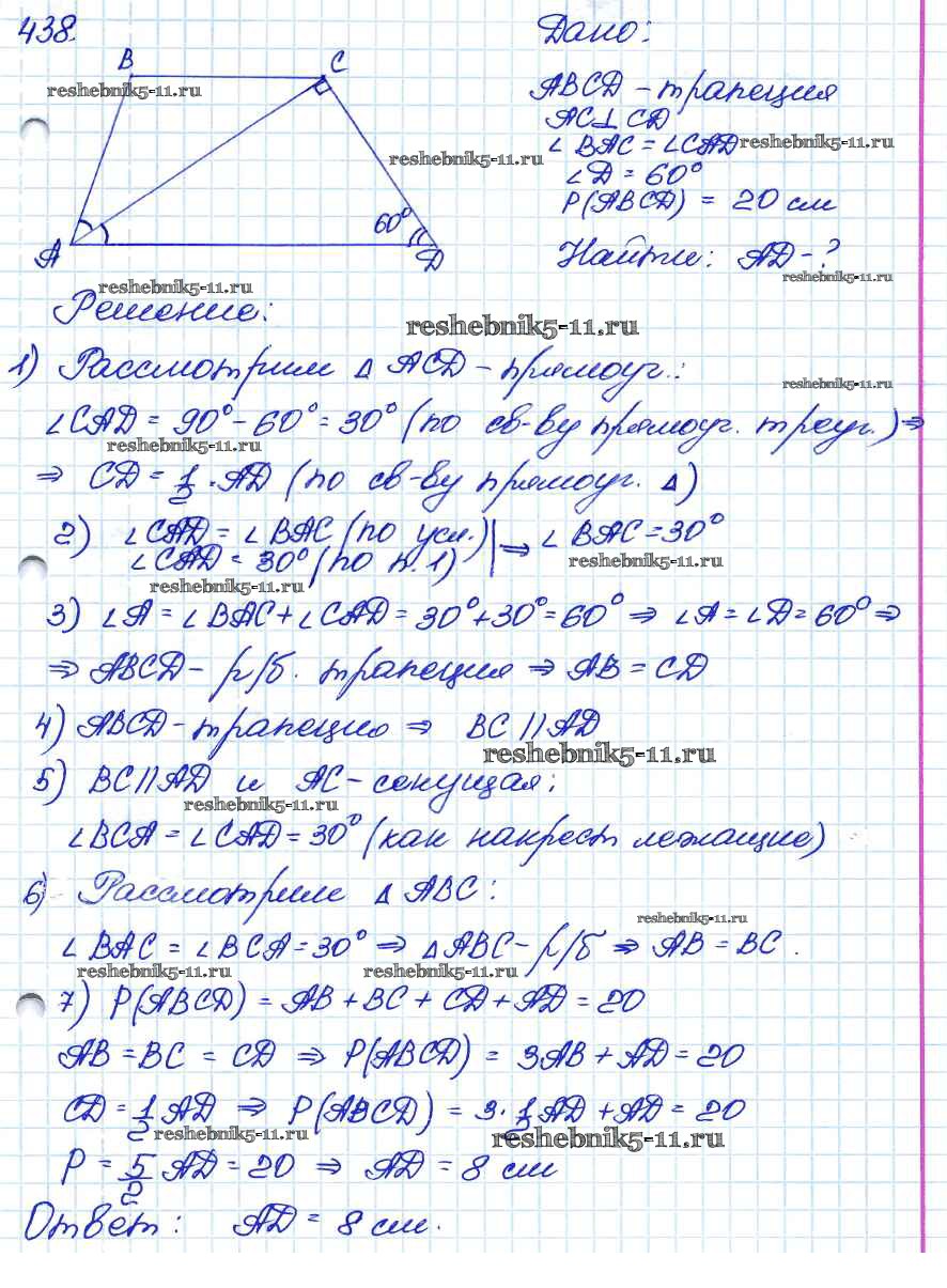 Готовая домашняя работа с ответами по Геометрии за 7, 8, 9 класс Атанасян, Бутузов, Кадомцев Учебник Просвещение 2010 ФГОС - Задачи 438