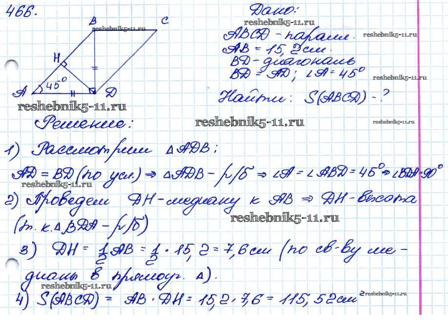 Готовая домашняя работа с ответами по Геометрии за 7, 8, 9 класс Атанасян, Бутузов, Кадомцев Учебник Просвещение 2010 ФГОС - Задачи 466