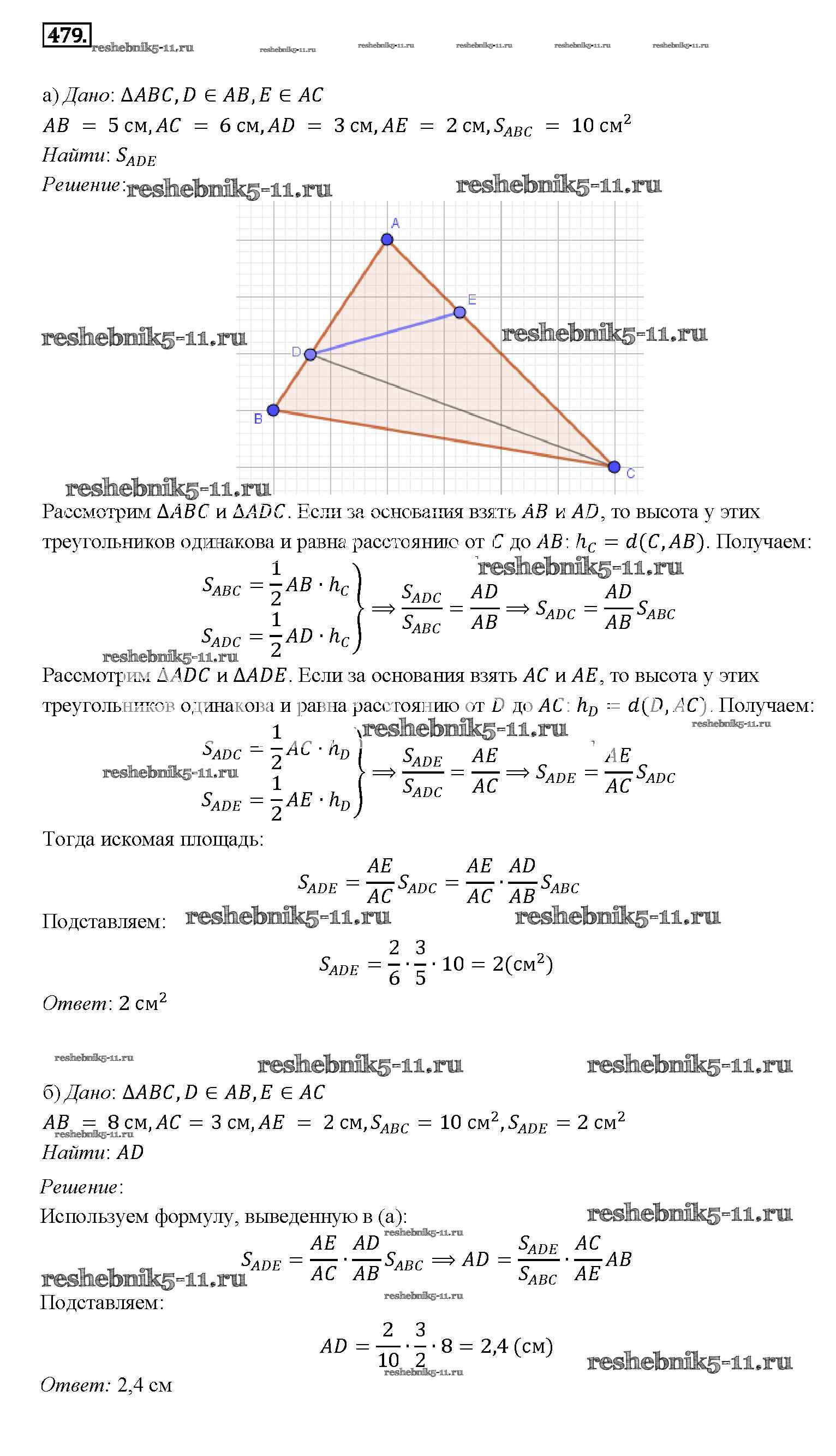 Готовая домашняя работа с ответами по Геометрии за 7, 8, 9 класс Атанасян, Бутузов, Кадомцев Учебник Просвещение 2010 ФГОС - Задачи 479