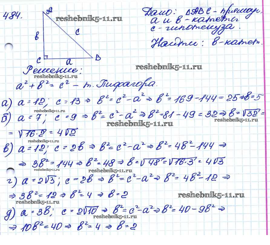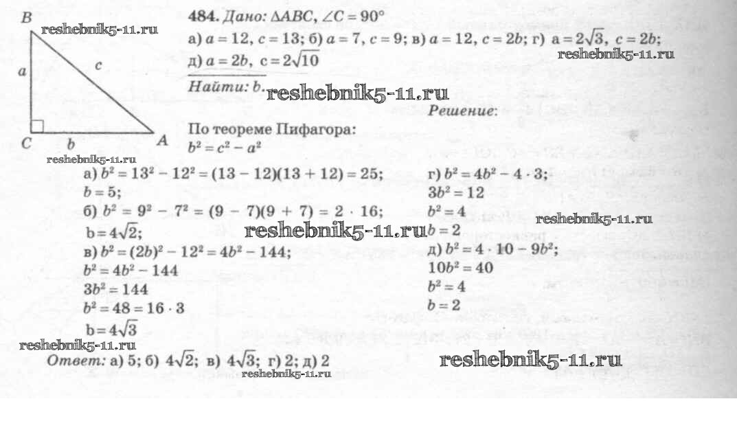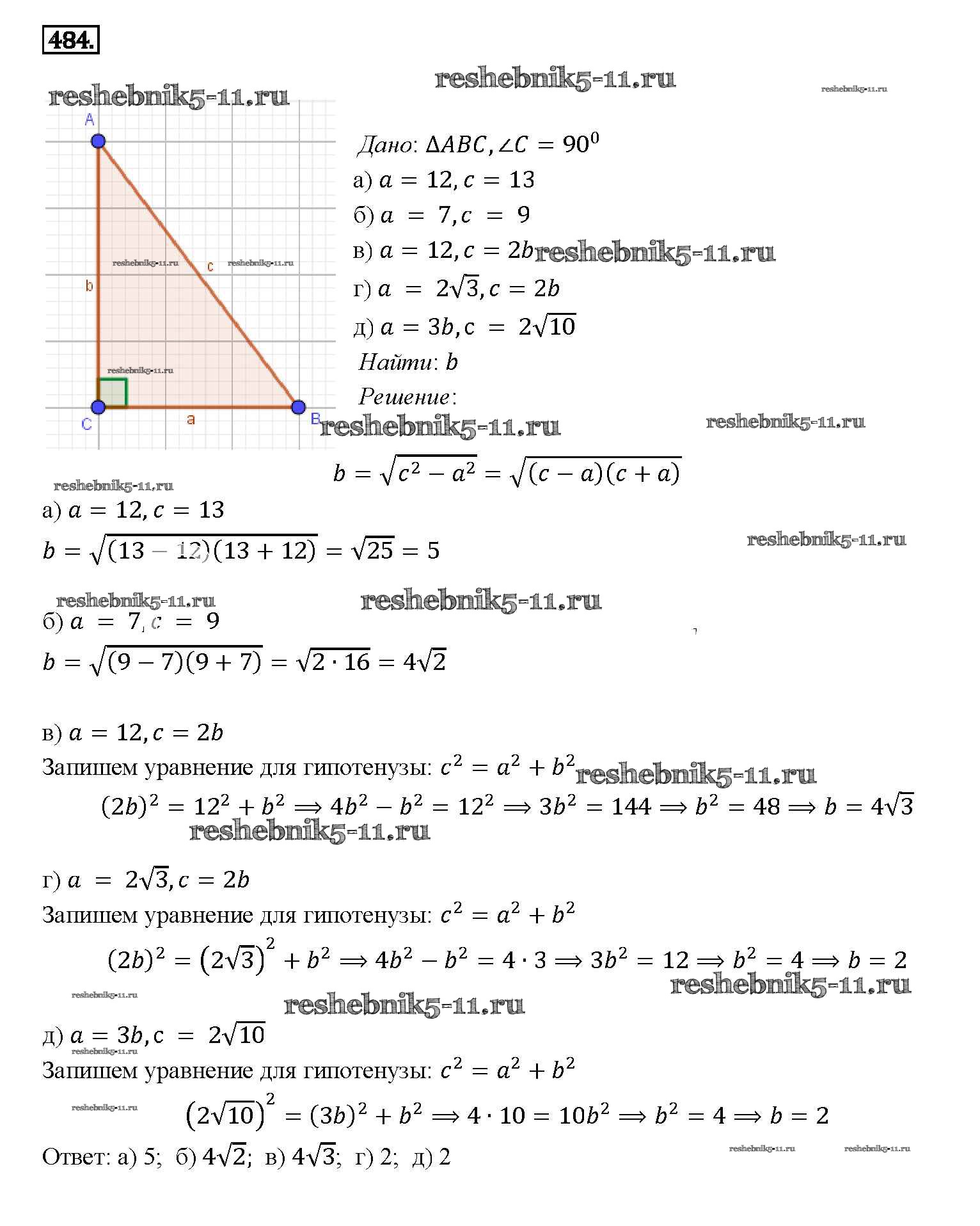 Готовая домашняя работа с ответами по Геометрии за 7, 8, 9 класс Атанасян, Бутузов, Кадомцев Учебник Просвещение 2010 ФГОС - Задачи 484