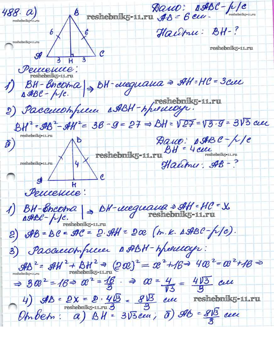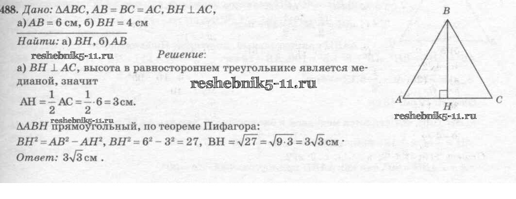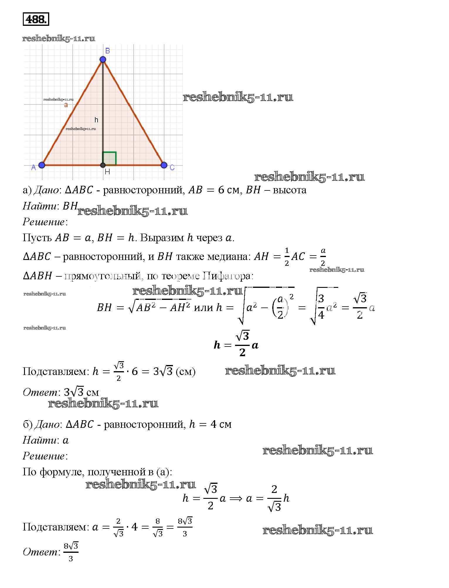 Готовая домашняя работа с ответами по Геометрии за 7, 8, 9 класс Атанасян, Бутузов, Кадомцев Учебник Просвещение 2010 ФГОС - Задачи 488