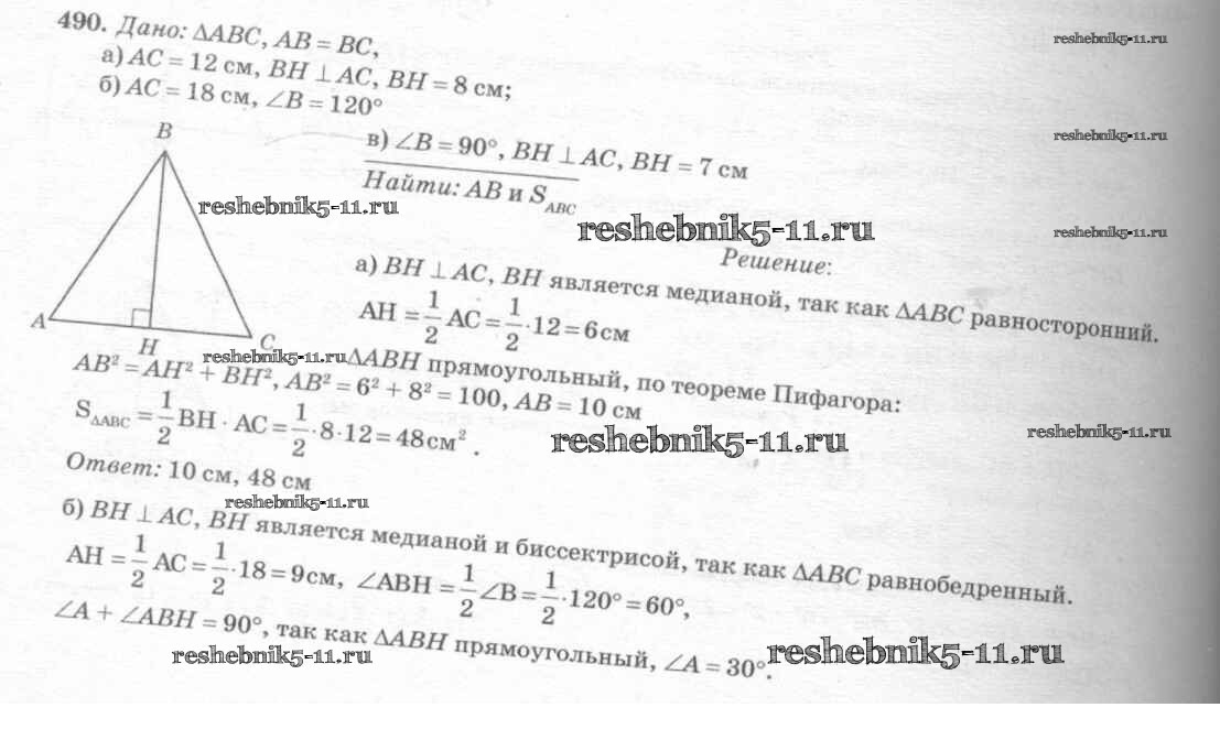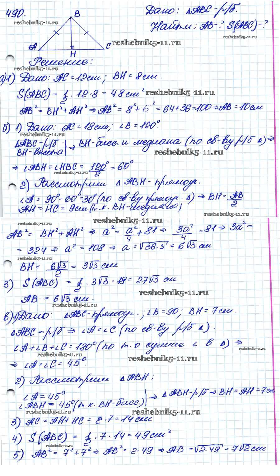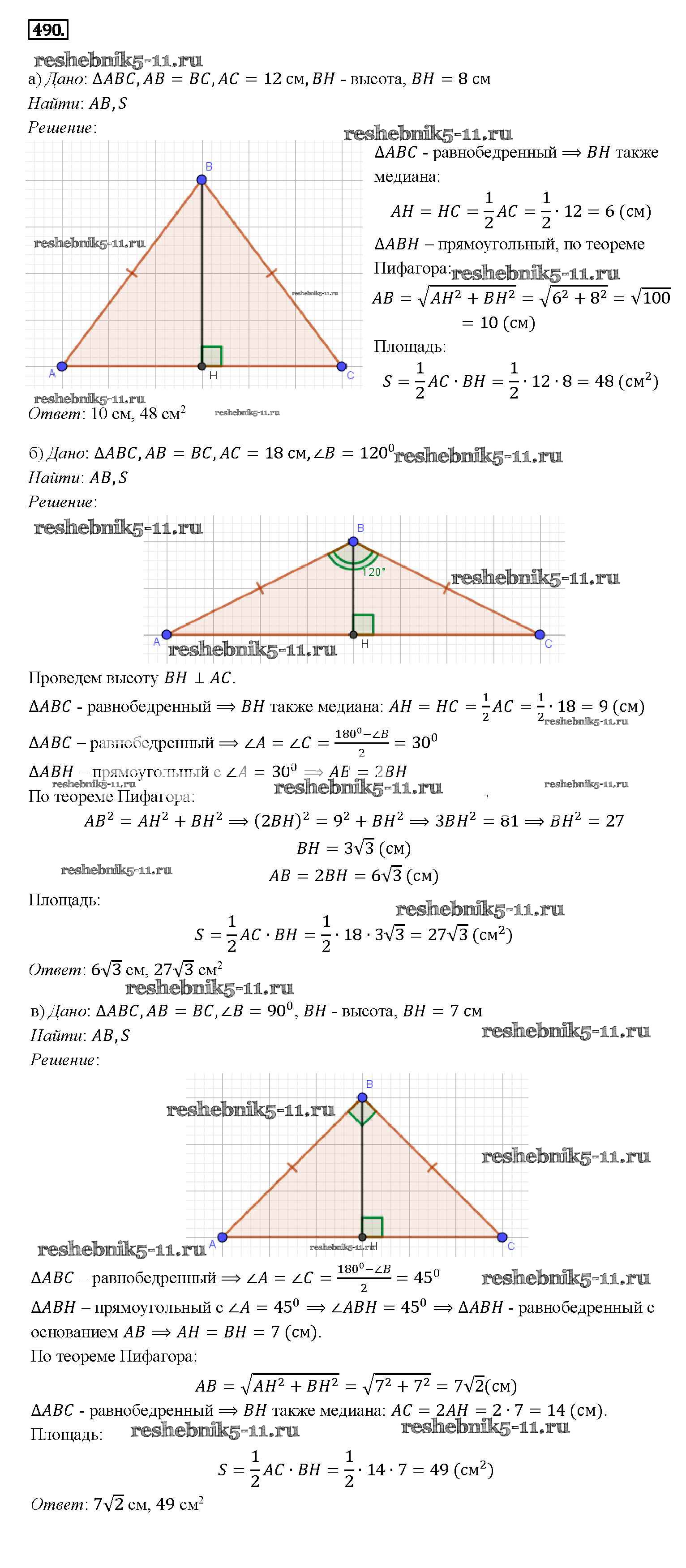 Готовая домашняя работа с ответами по Геометрии за 7, 8, 9 класс Атанасян, Бутузов, Кадомцев Учебник Просвещение 2010 ФГОС - Задачи 490