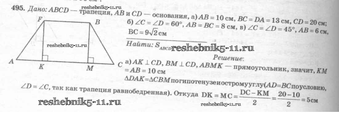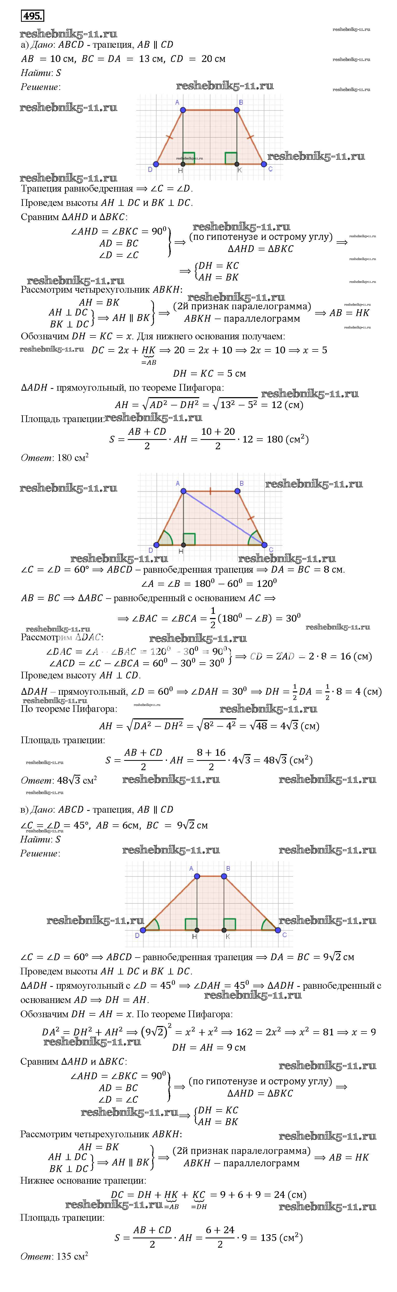 Готовая домашняя работа с ответами по Геометрии за 7, 8, 9 класс Атанасян, Бутузов, Кадомцев Учебник Просвещение 2010 ФГОС - Задачи 495
