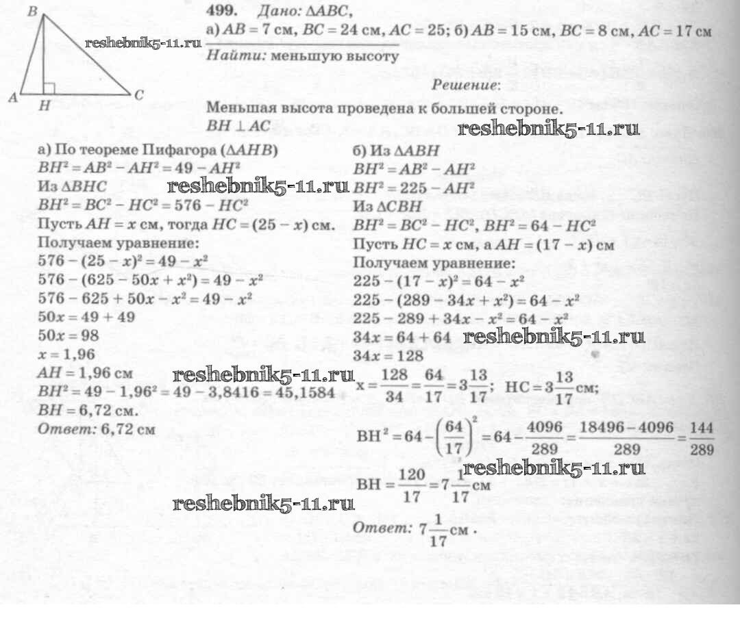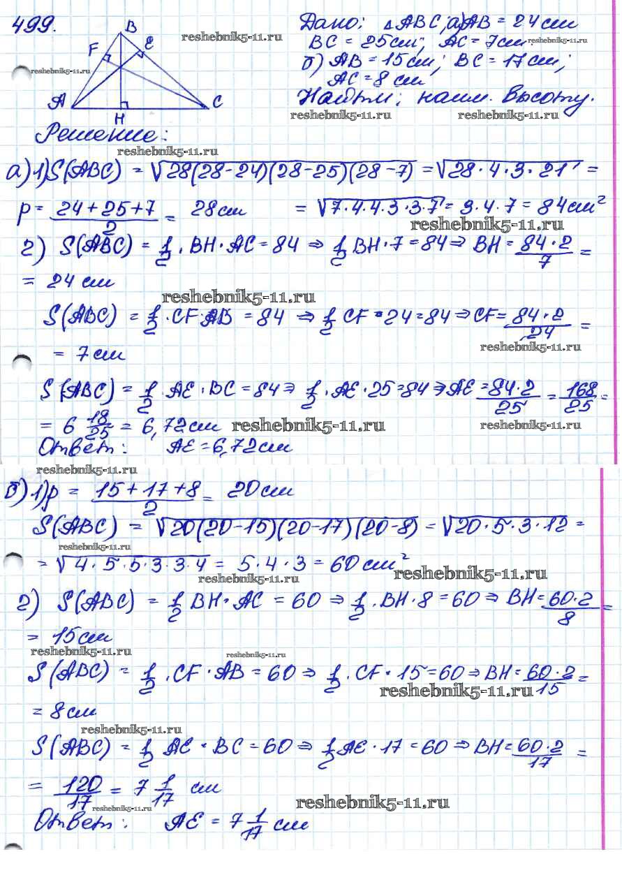 Готовая домашняя работа с ответами по Геометрии за 7, 8, 9 класс Атанасян, Бутузов, Кадомцев Учебник Просвещение 2010 ФГОС - Задачи 499