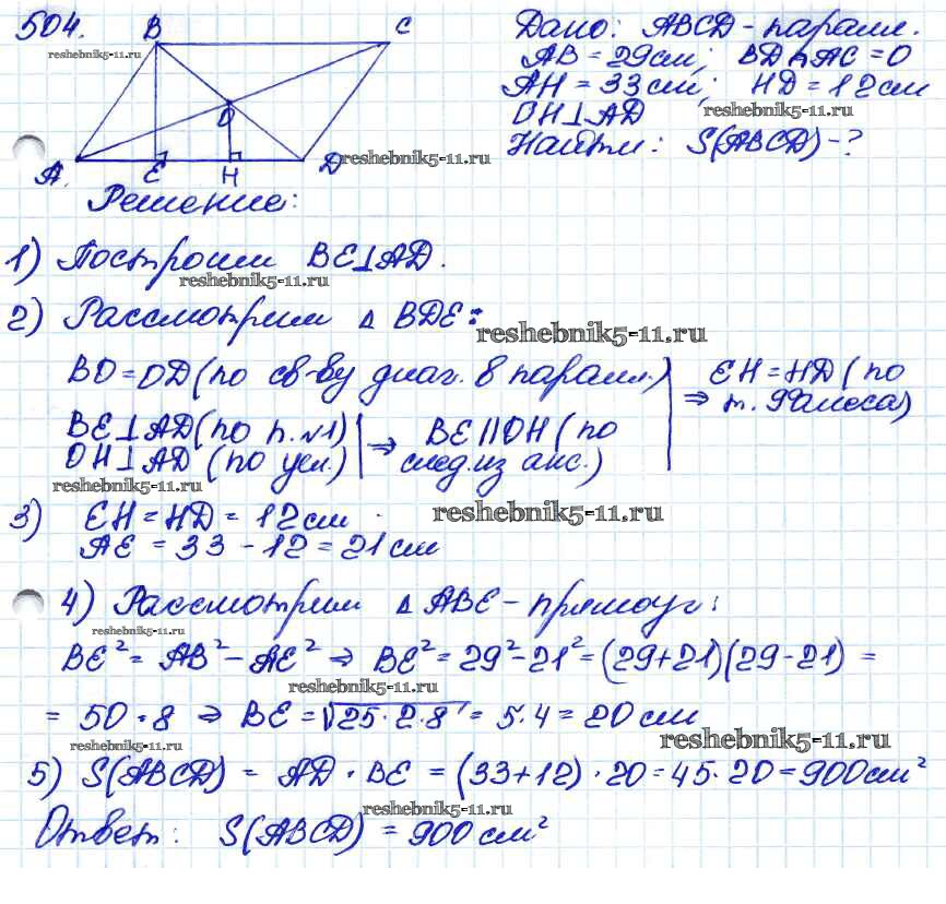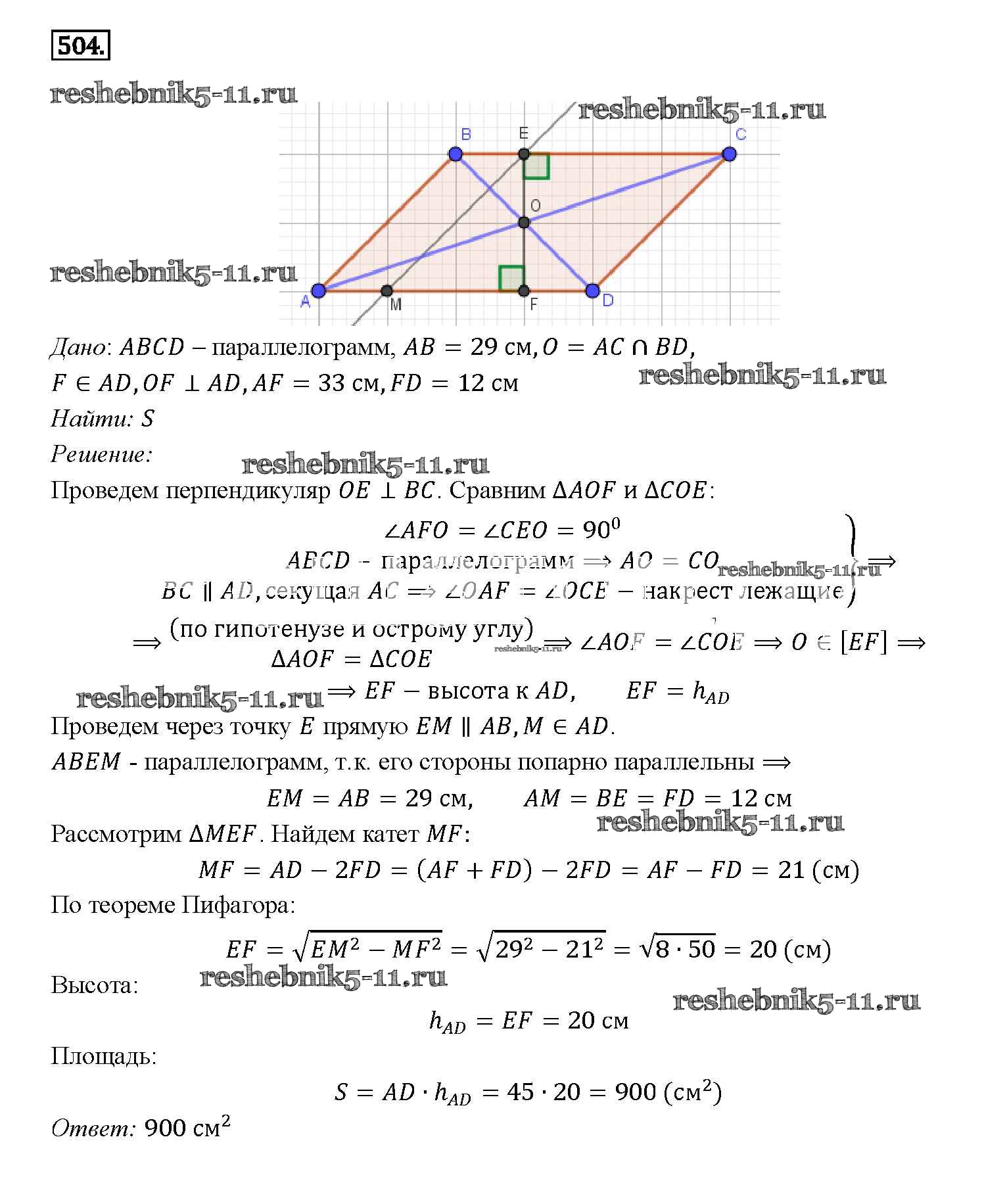 Готовая домашняя работа с ответами по Геометрии за 7, 8, 9 класс Атанасян, Бутузов, Кадомцев Учебник Просвещение 2010 ФГОС - Задачи 504