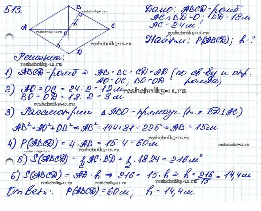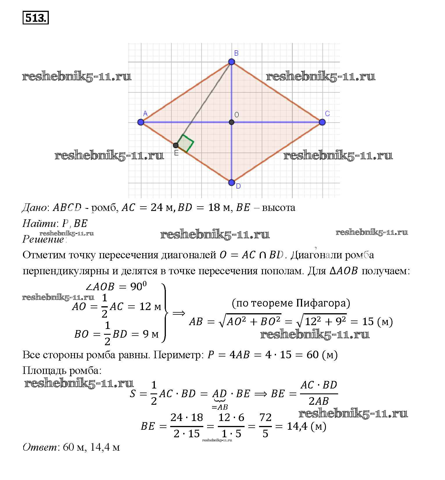 Готовая домашняя работа с ответами по Геометрии за 7, 8, 9 класс Атанасян, Бутузов, Кадомцев Учебник Просвещение 2010 ФГОС - Задачи 513
