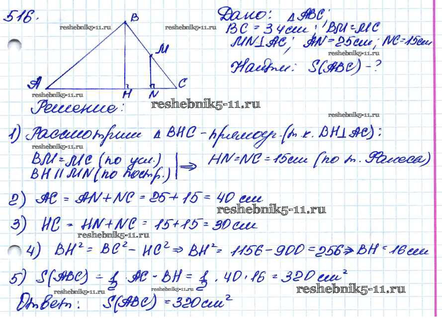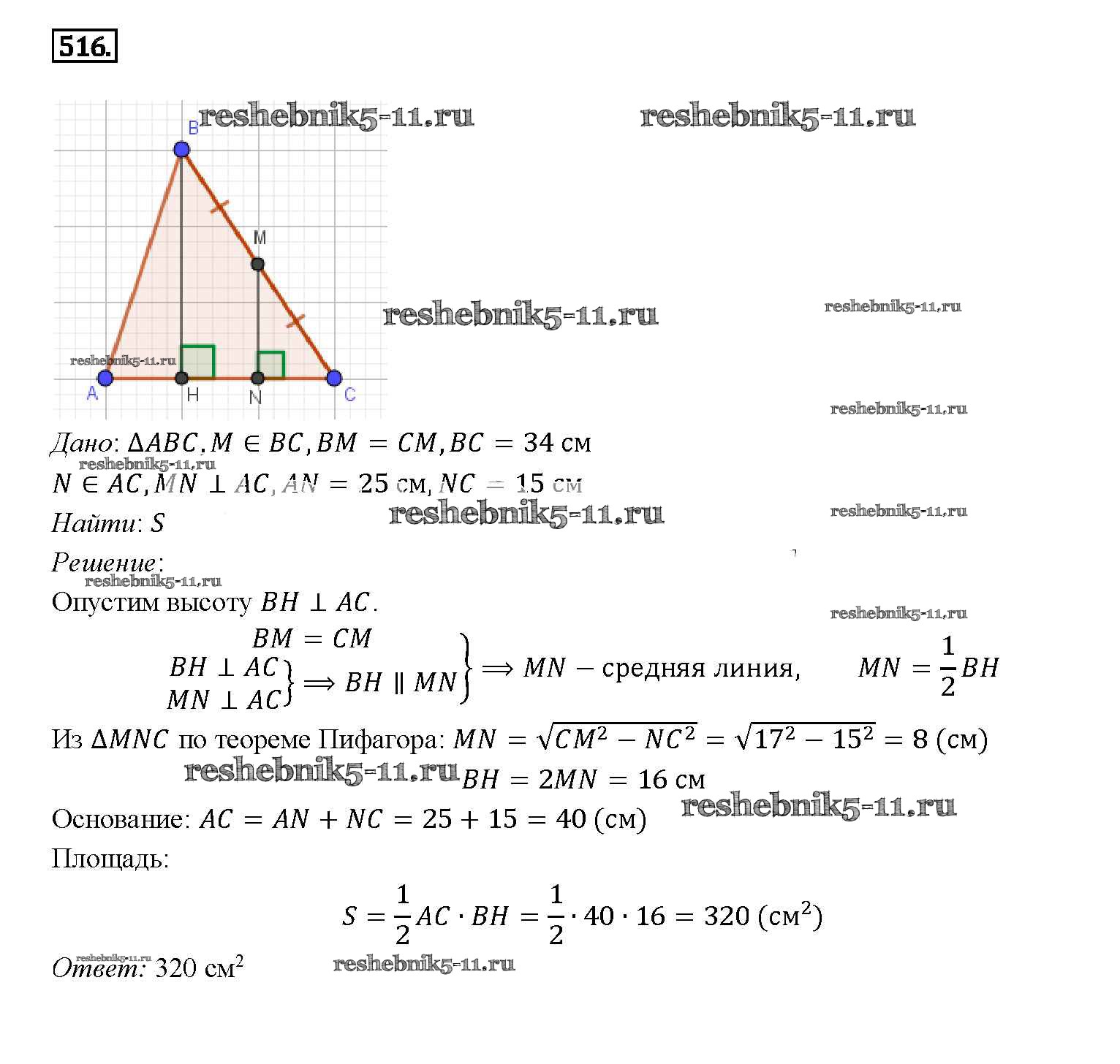 Готовая домашняя работа с ответами по Геометрии за 7, 8, 9 класс Атанасян, Бутузов, Кадомцев Учебник Просвещение 2010 ФГОС - Задачи 516