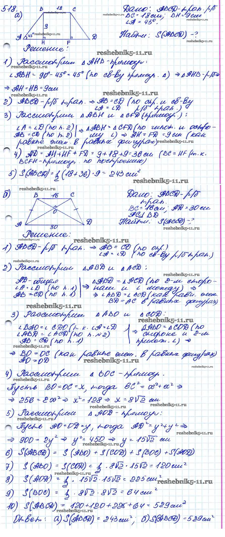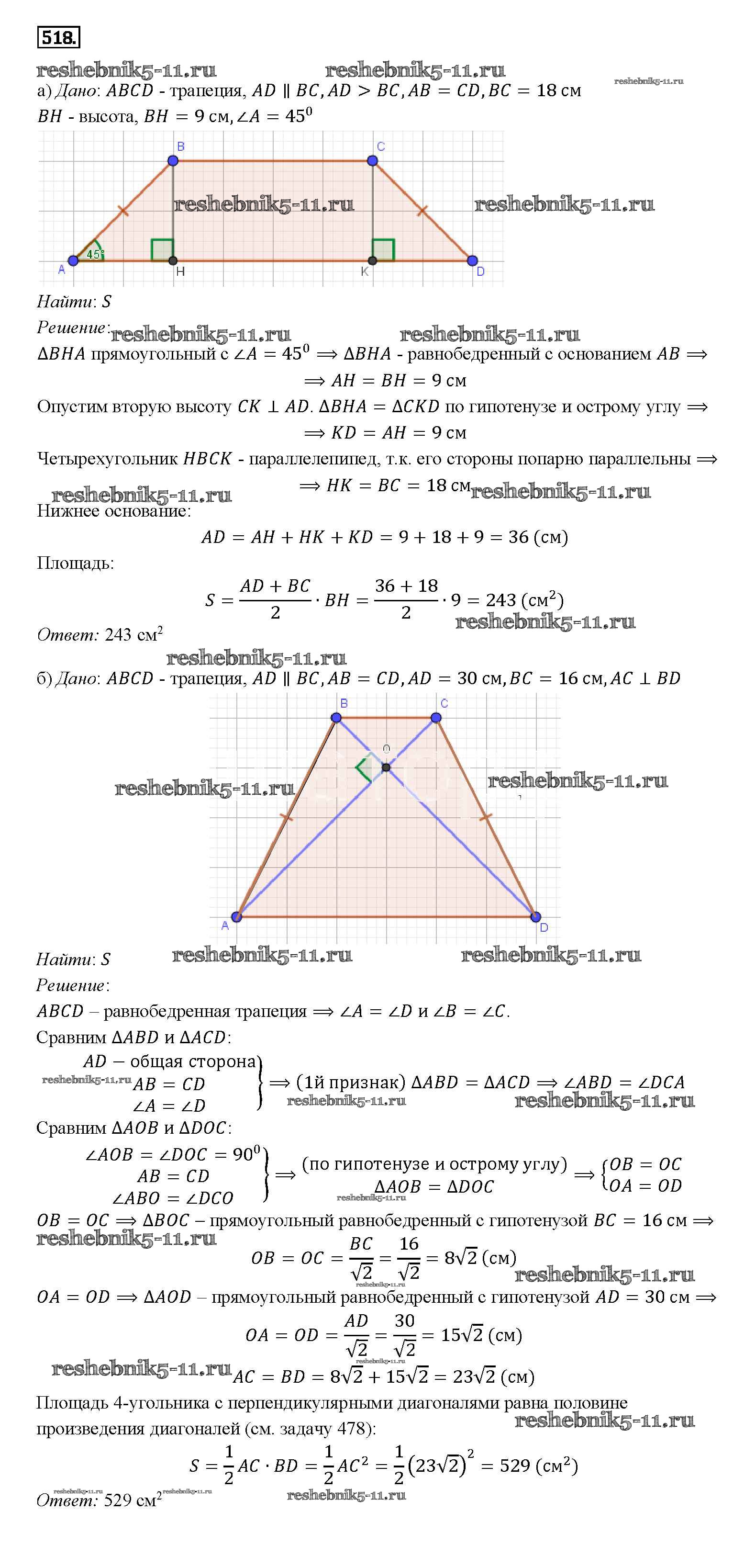 Готовая домашняя работа с ответами по Геометрии за 7, 8, 9 класс Атанасян, Бутузов, Кадомцев Учебник Просвещение 2010 ФГОС - Задачи 518