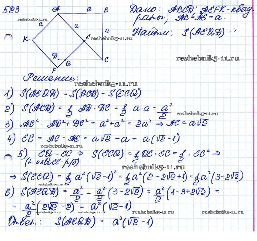 Готовая домашняя работа с ответами по Геометрии за 7, 8, 9 класс Атанасян, Бутузов, Кадомцев Учебник Просвещение 2010 ФГОС - Задачи 523