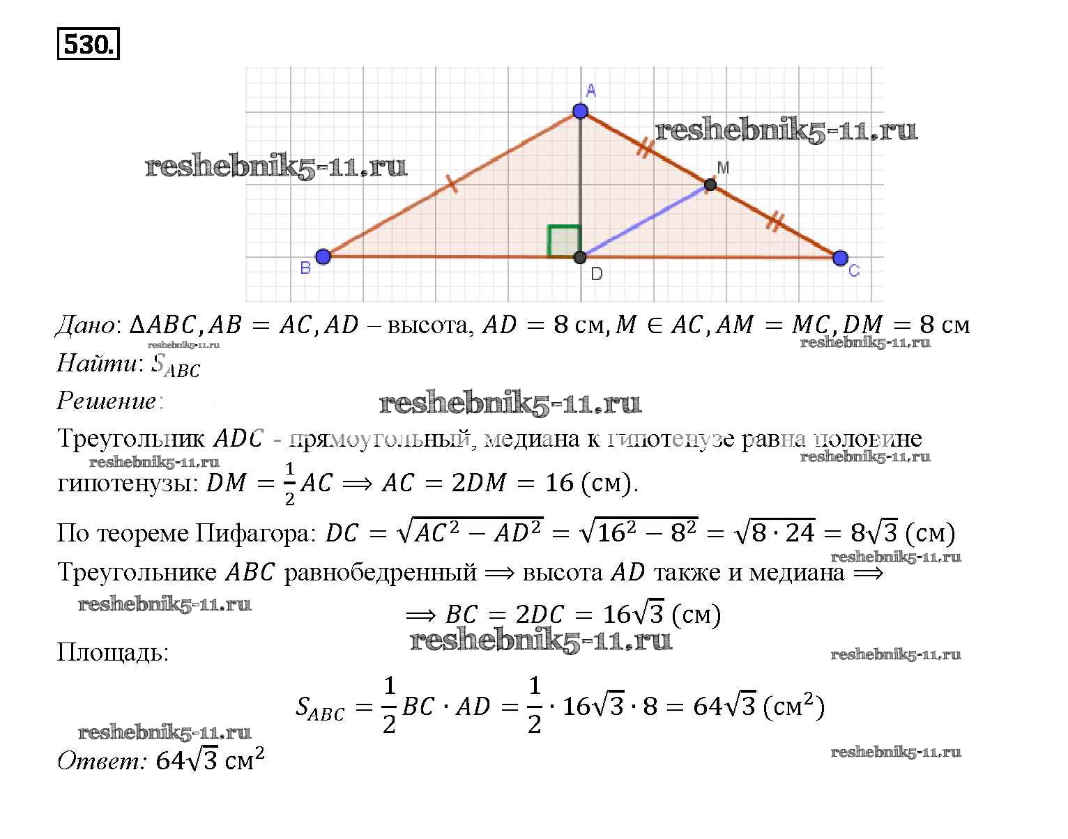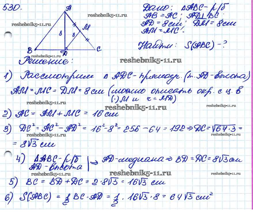 Готовая домашняя работа с ответами по Геометрии за 7, 8, 9 класс Атанасян, Бутузов, Кадомцев Учебник Просвещение 2010 ФГОС - Задачи 530