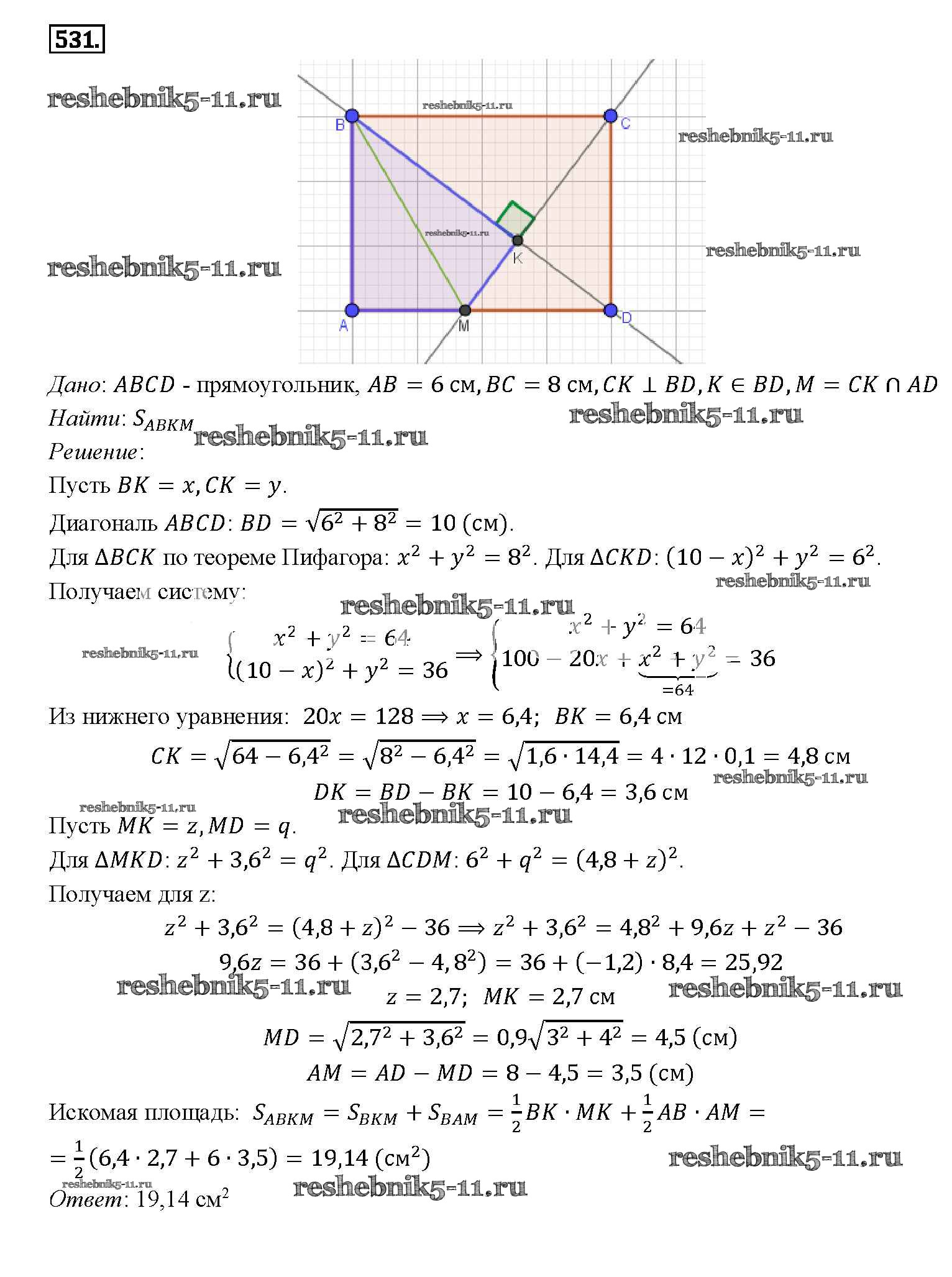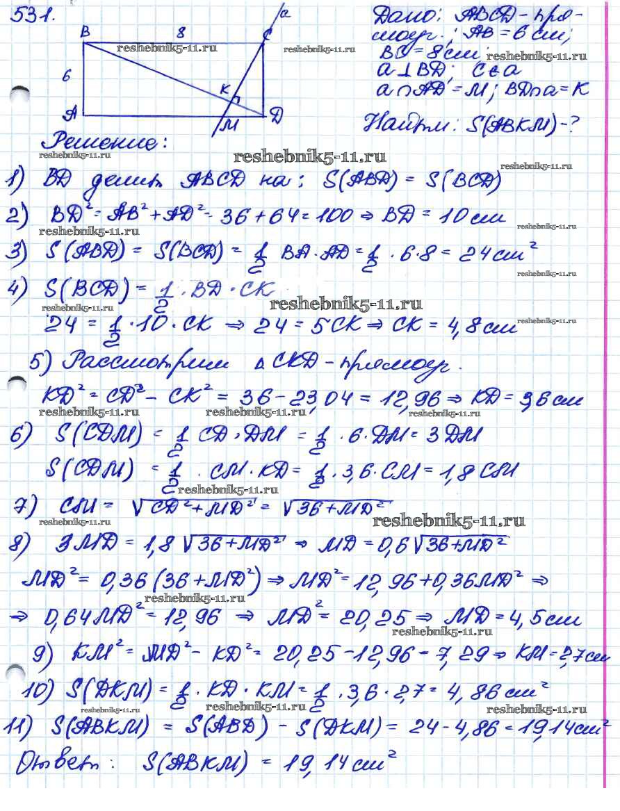 Готовая домашняя работа с ответами по Геометрии за 7, 8, 9 класс Атанасян, Бутузов, Кадомцев Учебник Просвещение 2010 ФГОС - Задачи 531