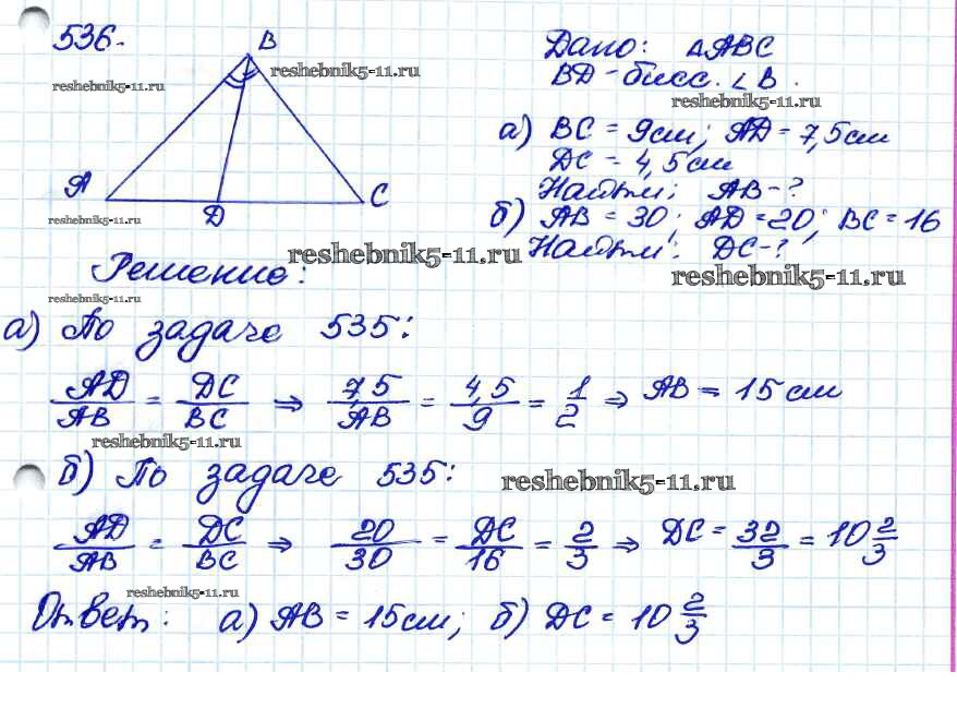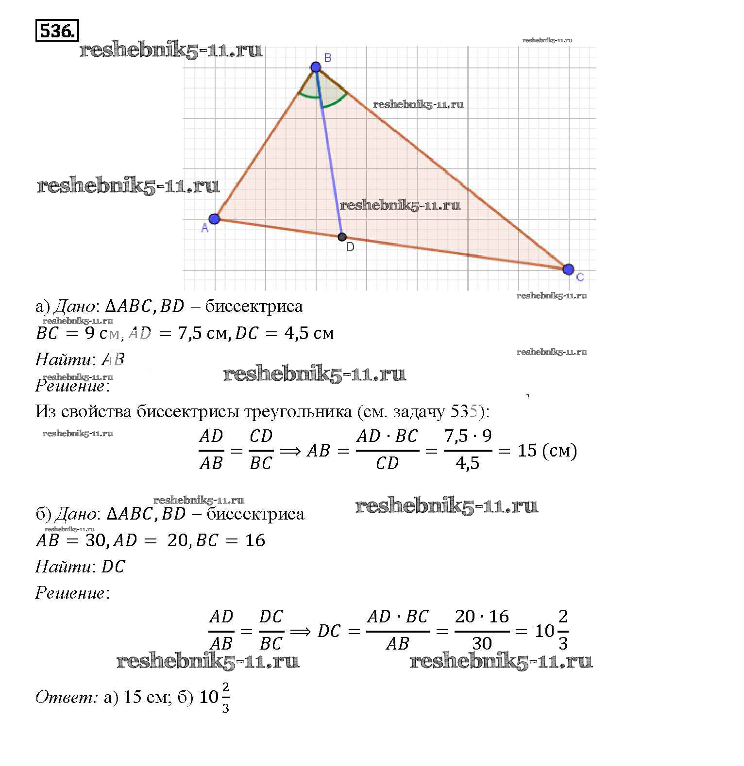 Готовая домашняя работа с ответами по Геометрии за 7, 8, 9 класс Атанасян, Бутузов, Кадомцев Учебник Просвещение 2010 ФГОС - Задачи 536