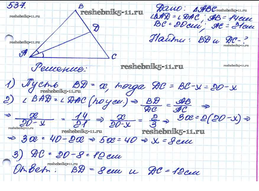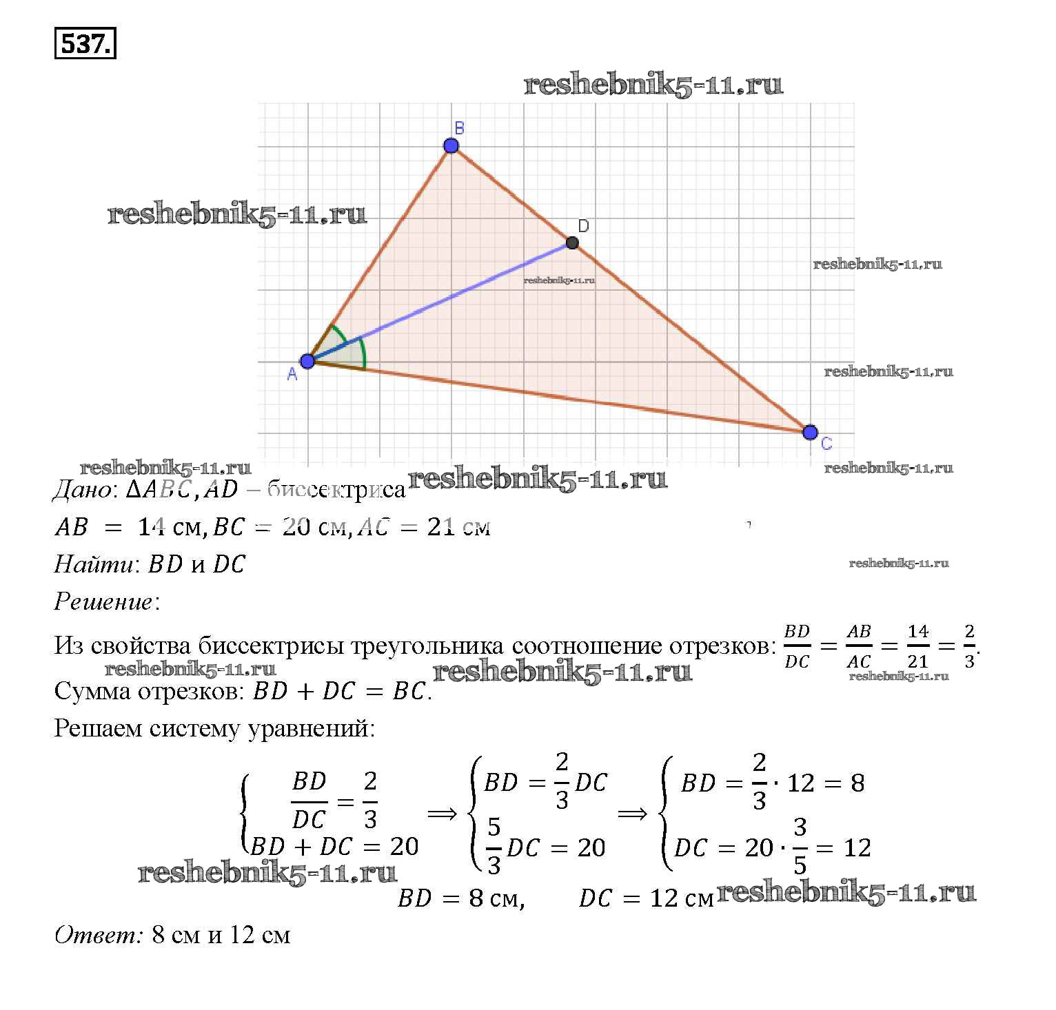 Готовая домашняя работа с ответами по Геометрии за 7, 8, 9 класс Атанасян, Бутузов, Кадомцев Учебник Просвещение 2010 ФГОС - Задачи 537