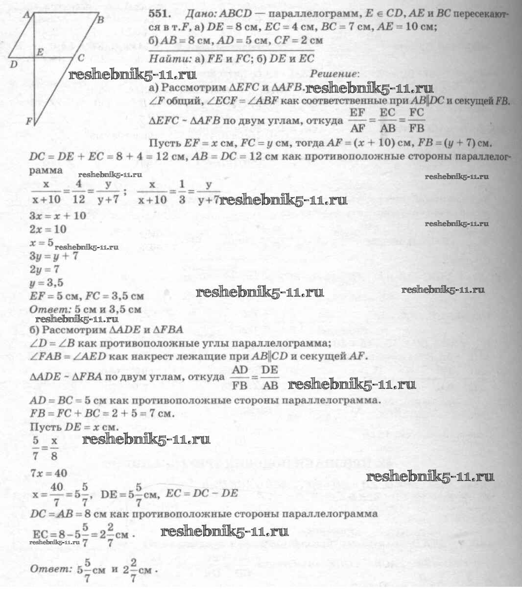 Готовая домашняя работа с ответами по Геометрии за 7, 8, 9 класс Атанасян, Бутузов, Кадомцев Учебник Просвещение 2010 ФГОС - Задачи 551
