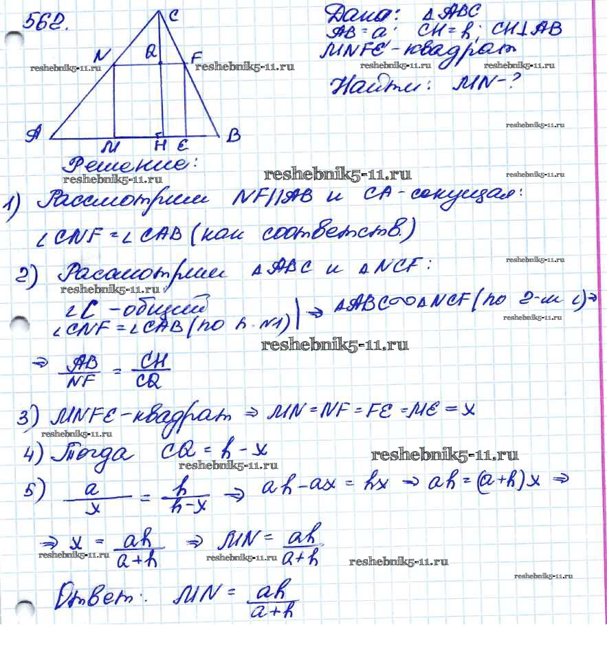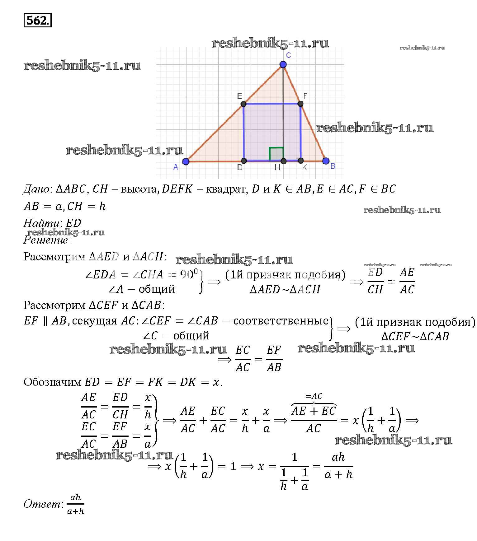 Готовая домашняя работа с ответами по Геометрии за 7, 8, 9 класс Атанасян, Бутузов, Кадомцев Учебник Просвещение 2010 ФГОС - Задачи 562