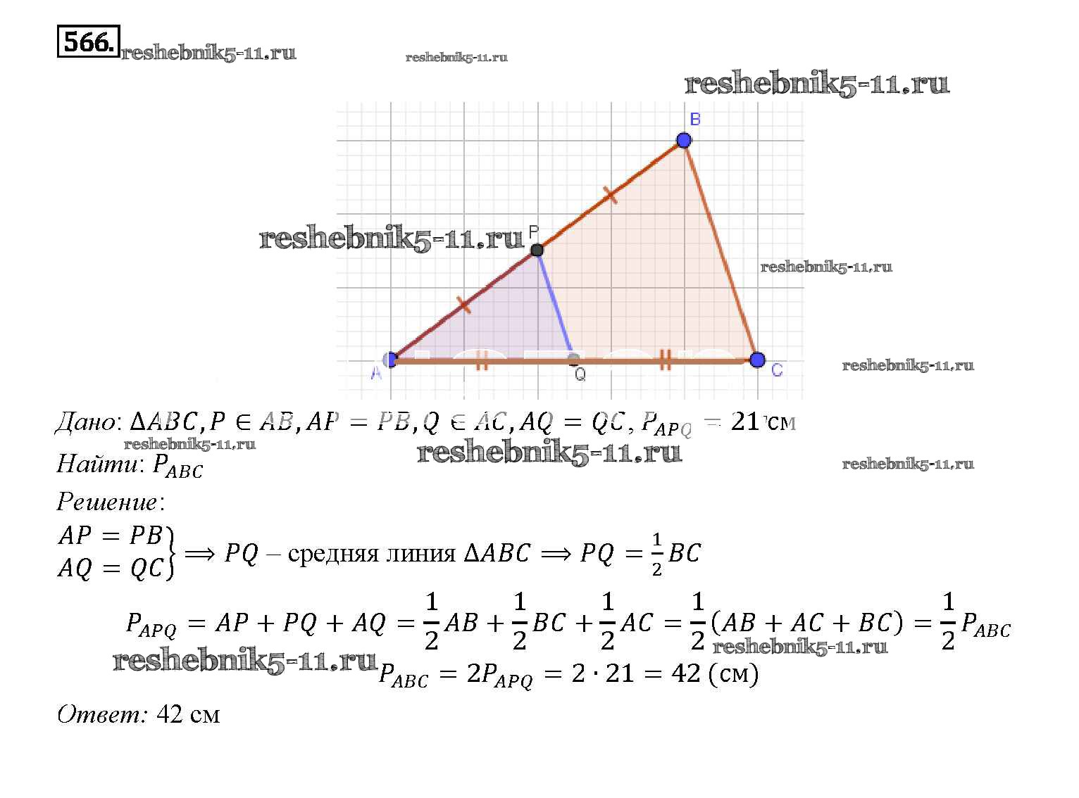 Готовая домашняя работа с ответами по Геометрии за 7, 8, 9 класс Атанасян, Бутузов, Кадомцев Учебник Просвещение 2010 ФГОС - Задачи 566
