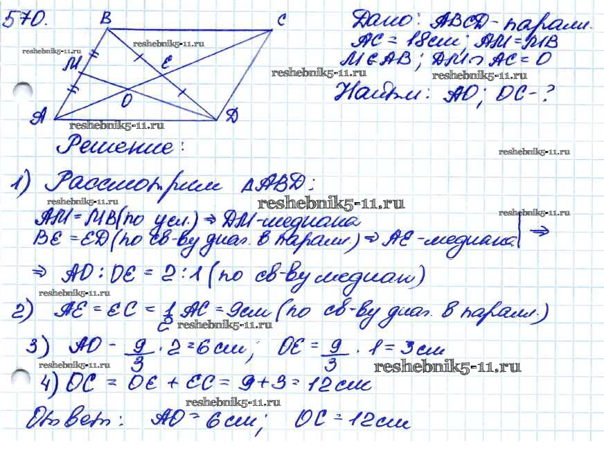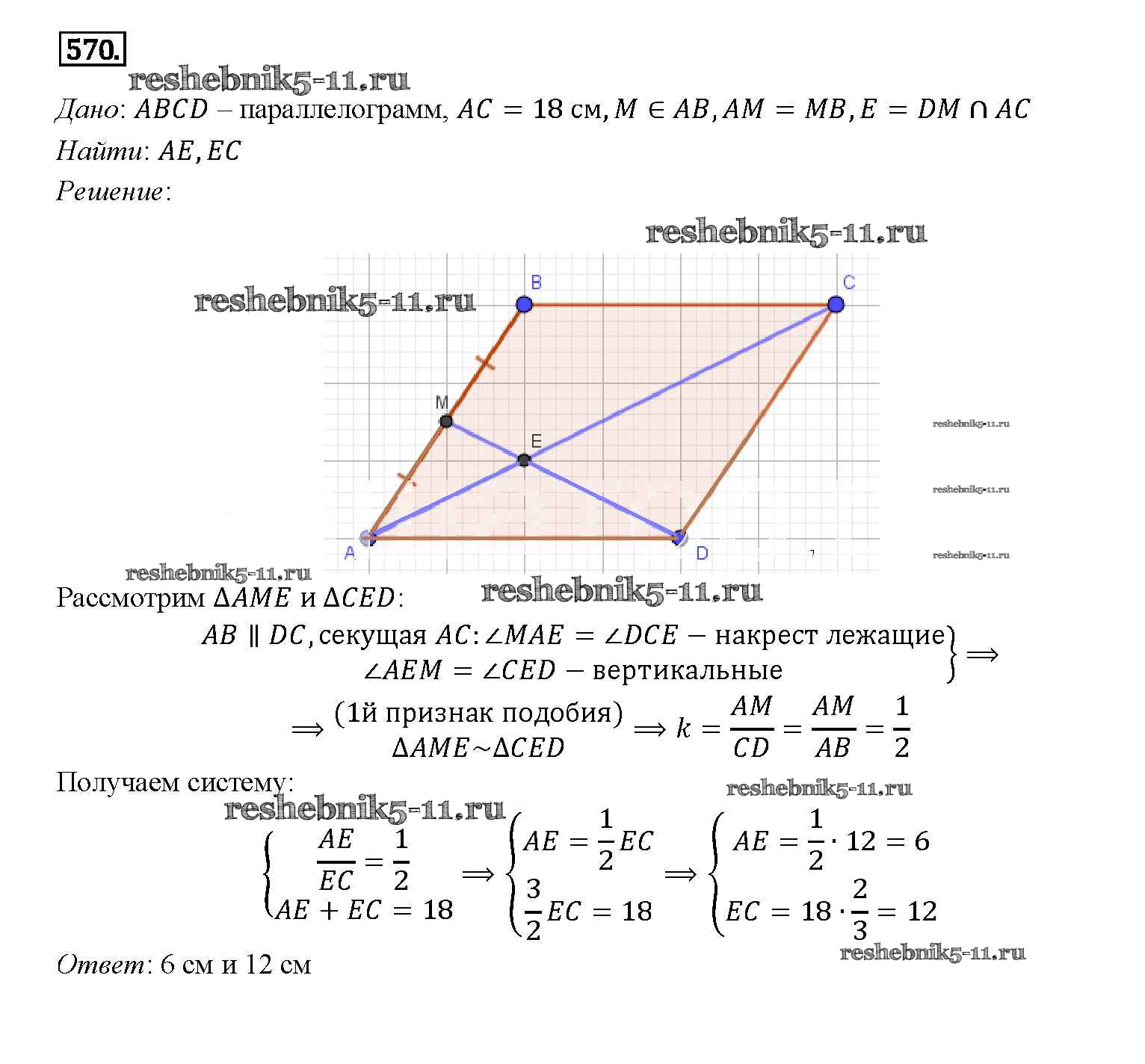 Готовая домашняя работа с ответами по Геометрии за 7, 8, 9 класс Атанасян, Бутузов, Кадомцев Учебник Просвещение 2010 ФГОС - Задачи 570