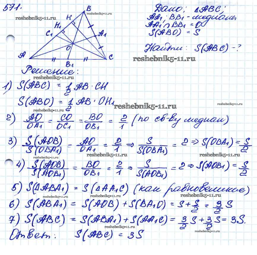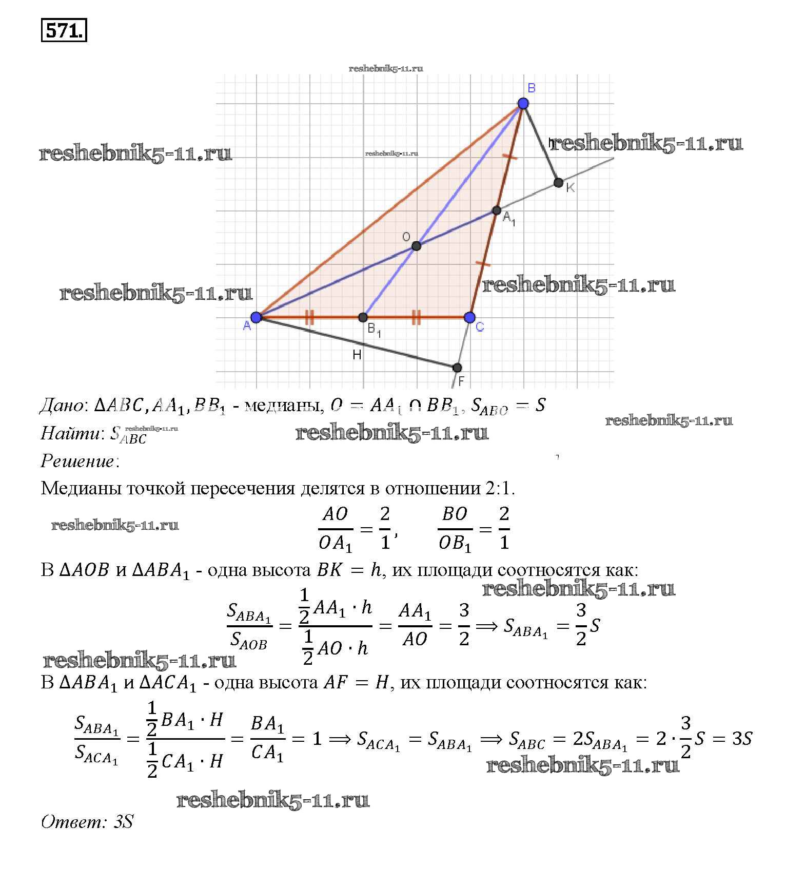 Готовая домашняя работа с ответами по Геометрии за 7, 8, 9 класс Атанасян, Бутузов, Кадомцев Учебник Просвещение 2010 ФГОС - Задачи 571