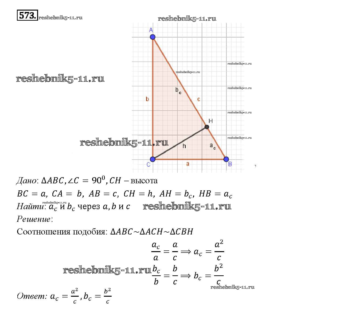 Готовая домашняя работа с ответами по Геометрии за 7, 8, 9 класс Атанасян, Бутузов, Кадомцев Учебник Просвещение 2010 ФГОС - Задачи 573