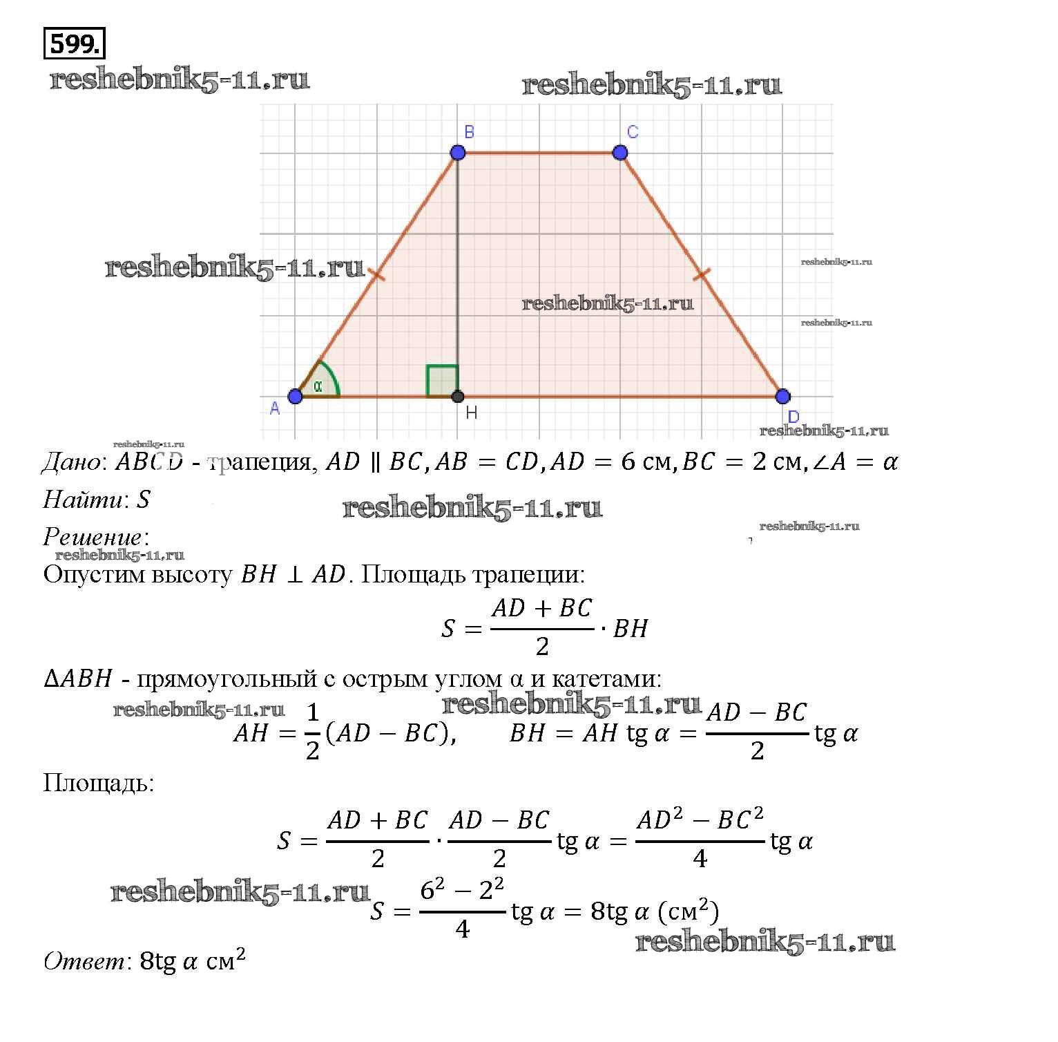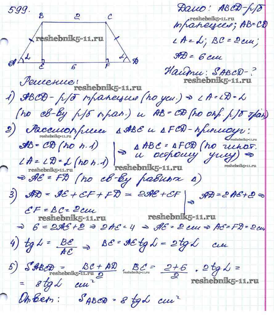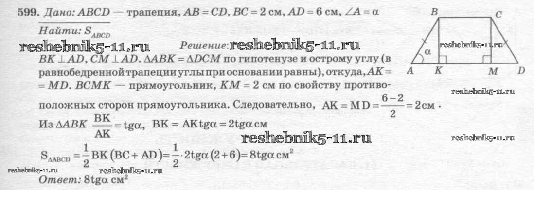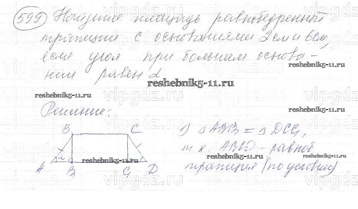 Готовая домашняя работа с ответами по Геометрии за 7, 8, 9 класс Атанасян, Бутузов, Кадомцев Учебник Просвещение 2010 ФГОС - Задачи 599