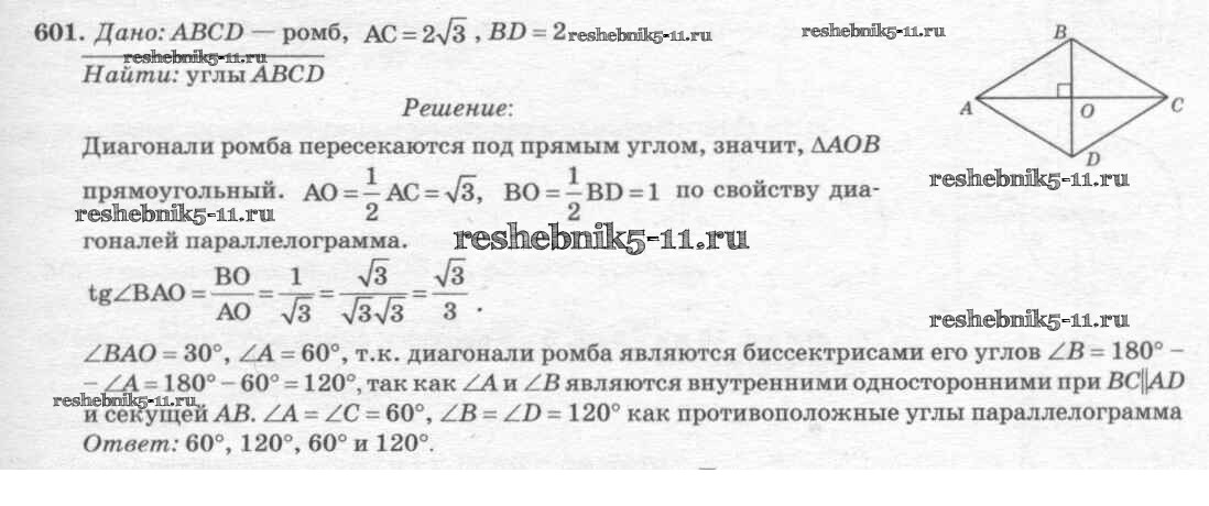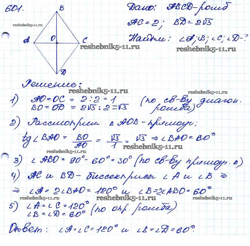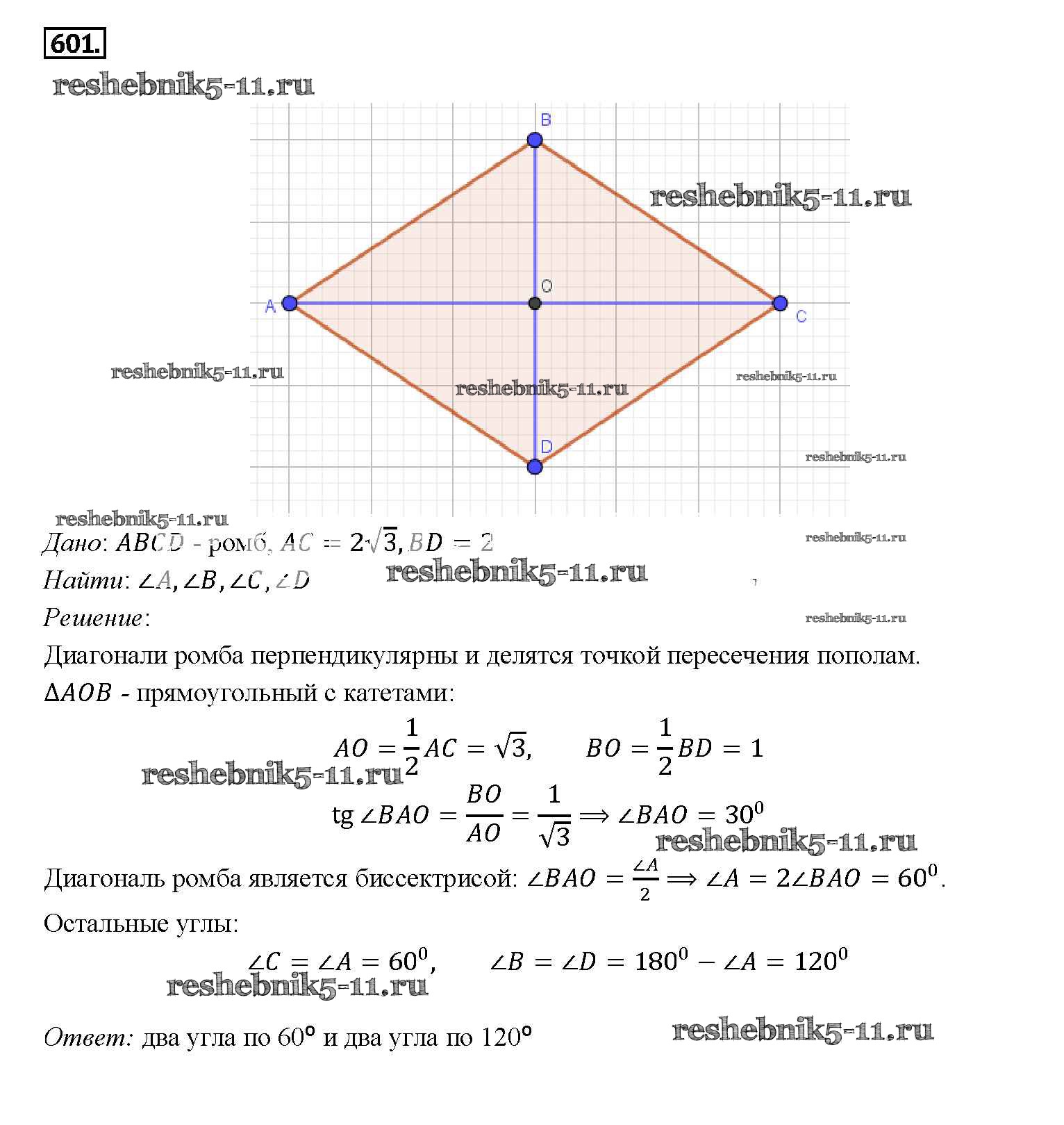 Готовая домашняя работа с ответами по Геометрии за 7, 8, 9 класс Атанасян, Бутузов, Кадомцев Учебник Просвещение 2010 ФГОС - Задачи 601