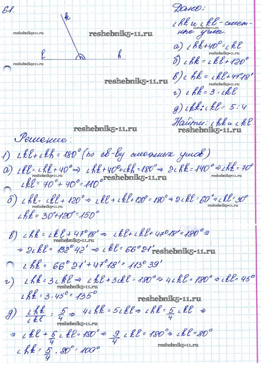 Готовая домашняя работа с ответами по Геометрии за 7, 8, 9 класс Атанасян, Бутузов, Кадомцев Учебник Просвещение 2010 ФГОС - Задачи 61