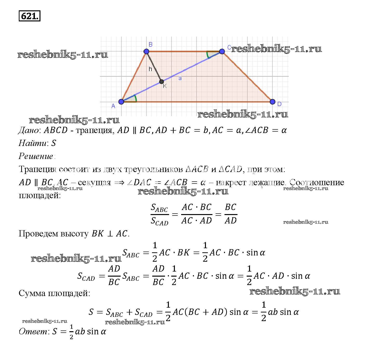 Готовая домашняя работа с ответами по Геометрии за 7, 8, 9 класс Атанасян, Бутузов, Кадомцев Учебник Просвещение 2010 ФГОС - Задачи 621