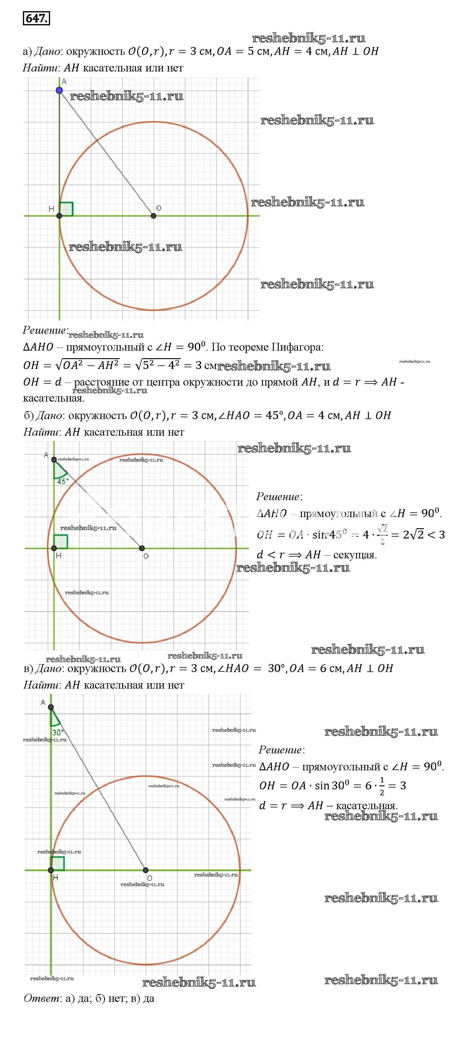 Готовая домашняя работа с ответами по Геометрии за 7, 8, 9 класс Атанасян, Бутузов, Кадомцев Учебник Просвещение 2010 ФГОС - Задачи 647