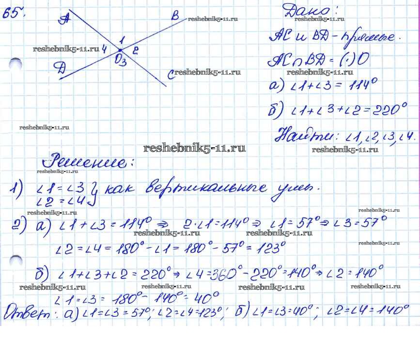 Готовая домашняя работа с ответами по Геометрии за 7, 8, 9 класс Атанасян, Бутузов, Кадомцев Учебник Просвещение 2010 ФГОС - Задачи 65
