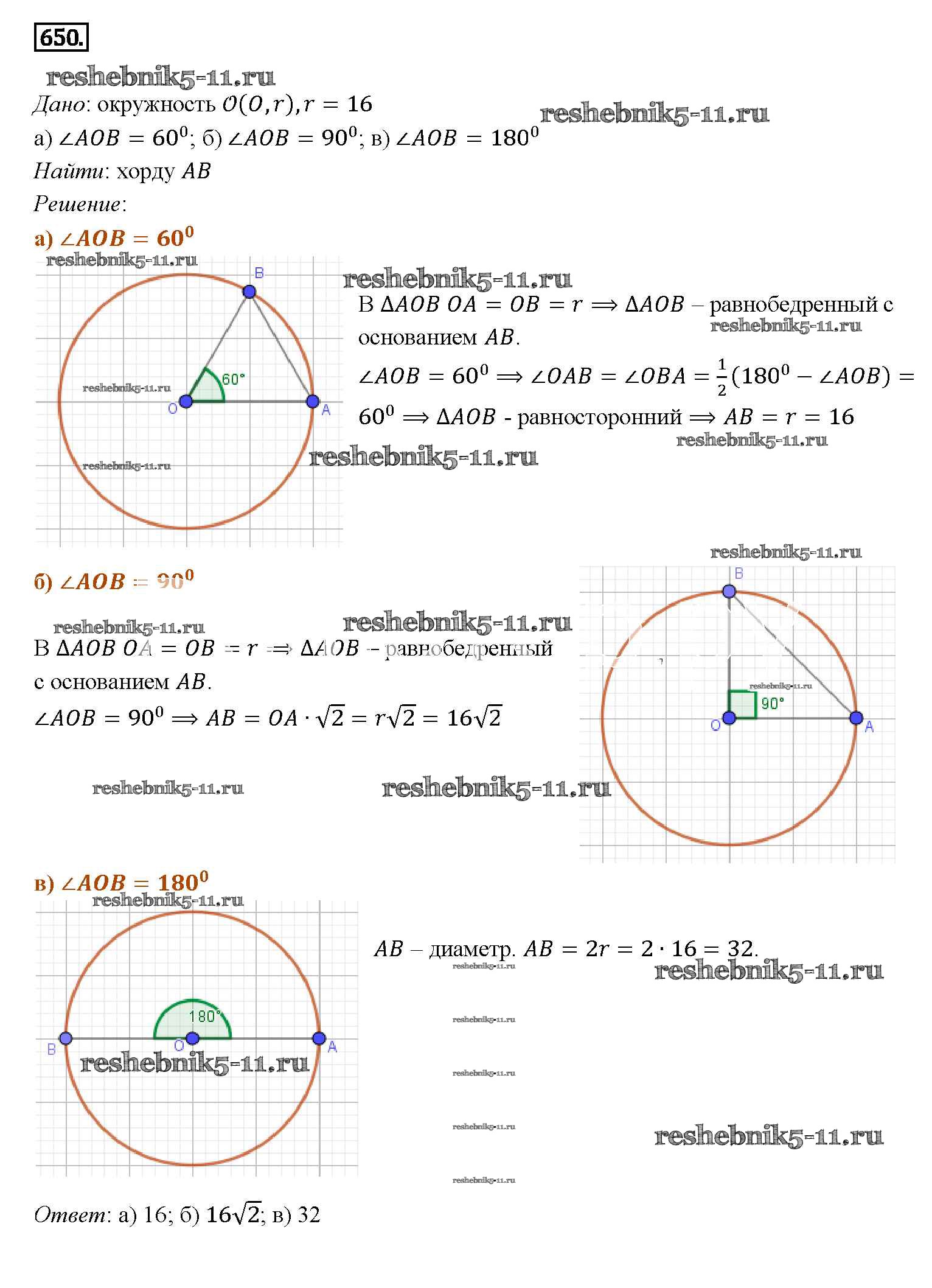 Готовая домашняя работа с ответами по Геометрии за 7, 8, 9 класс Атанасян, Бутузов, Кадомцев Учебник Просвещение 2010 ФГОС - Задачи 650