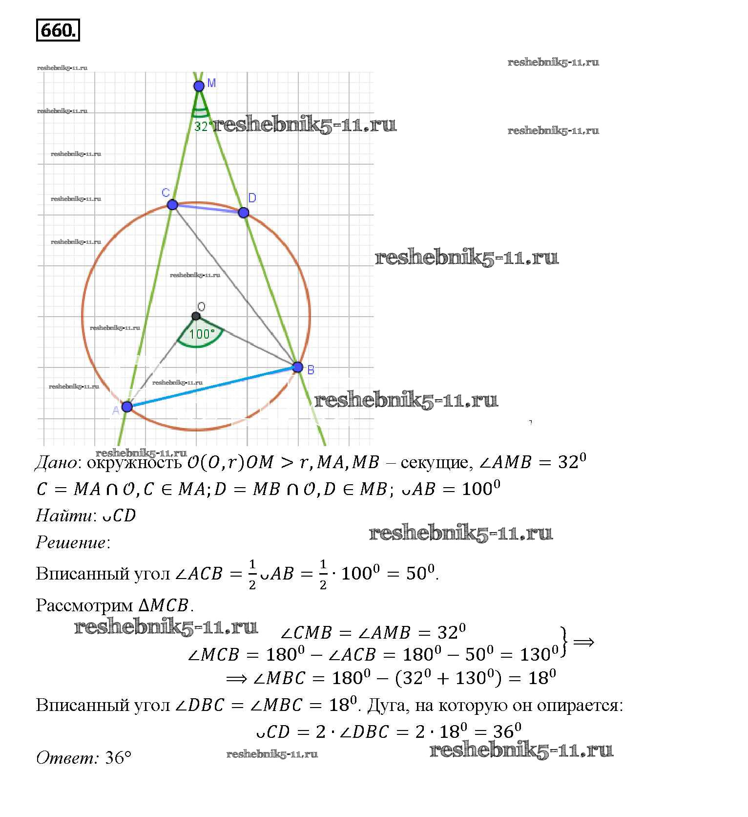 Готовая домашняя работа с ответами по Геометрии за 7, 8, 9 класс Атанасян, Бутузов, Кадомцев Учебник Просвещение 2010 ФГОС - Задачи 660