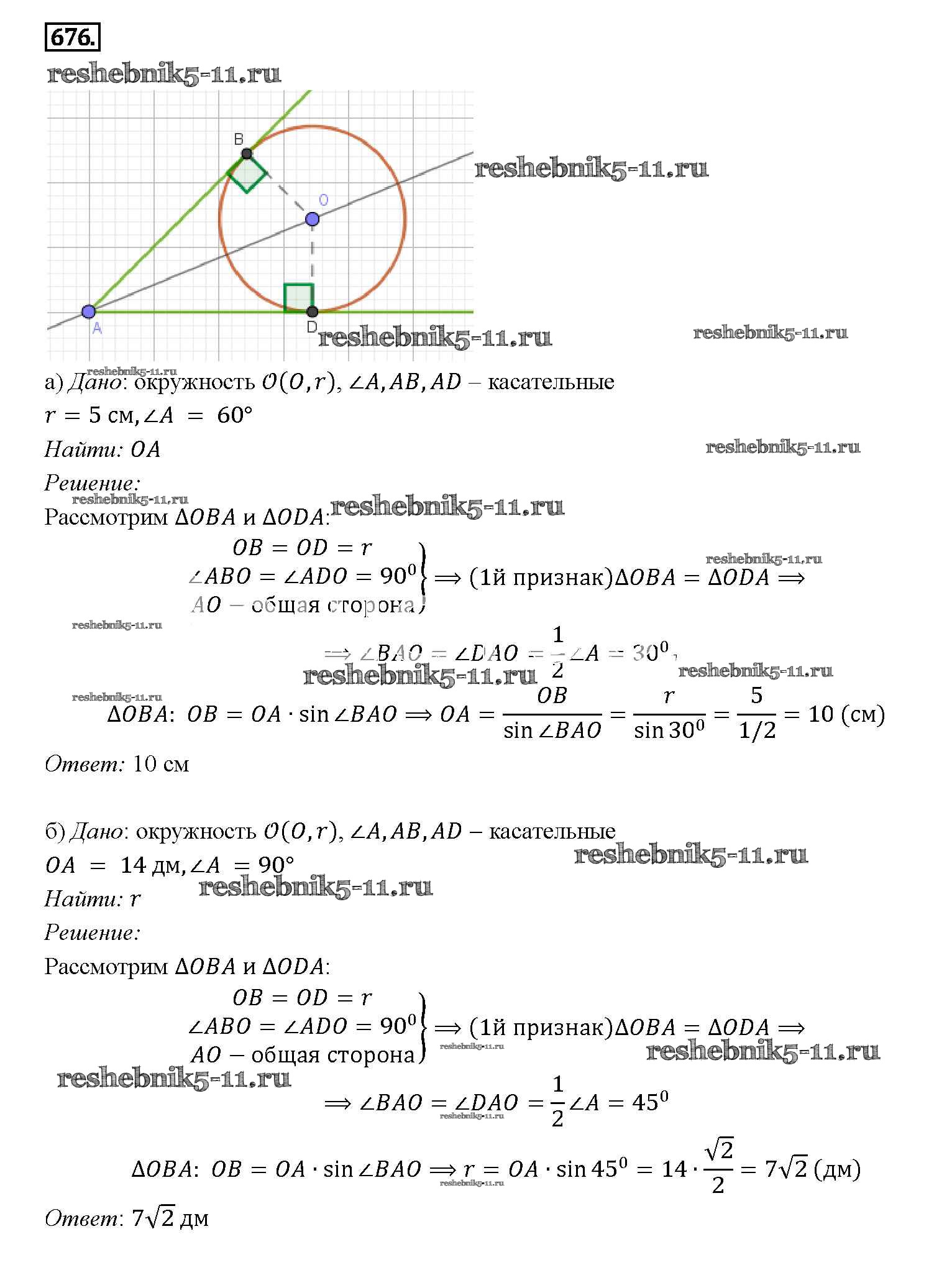 Готовая домашняя работа с ответами по Геометрии за 7, 8, 9 класс Атанасян, Бутузов, Кадомцев Учебник Просвещение 2010 ФГОС - Задачи 676