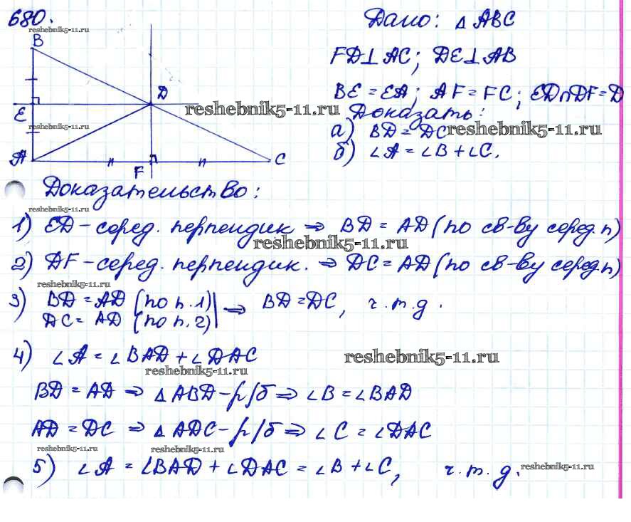 Готовая домашняя работа с ответами по Геометрии за 7, 8, 9 класс Атанасян, Бутузов, Кадомцев Учебник Просвещение 2010 ФГОС - Задачи 680